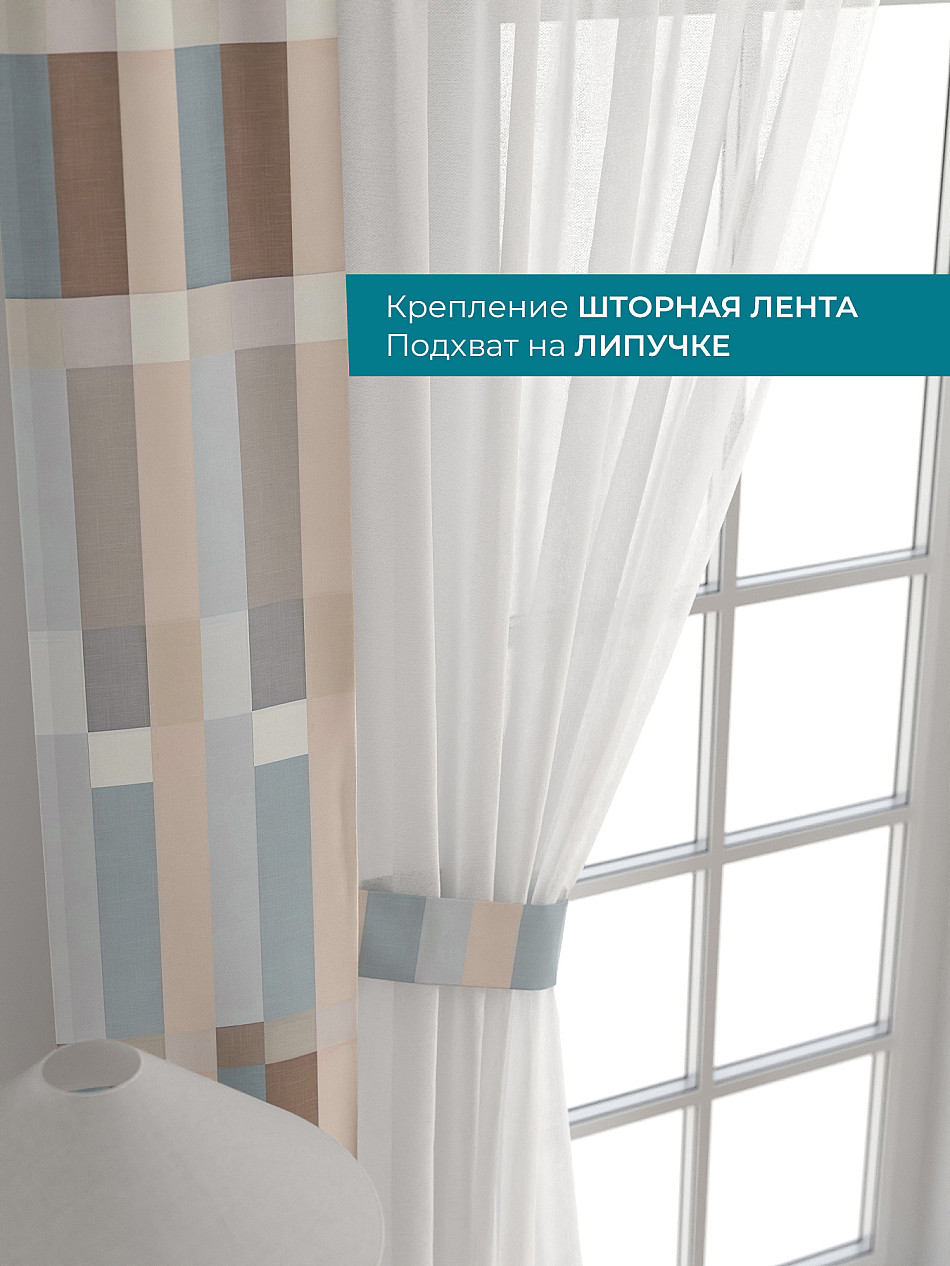 Декоративные подхваты 38х260 см — 2 шт.; Тюль 150х260 см — 2 шт. ( Изменить высоту) Крепление: шторная лента (крючки), кулиска Подробнее