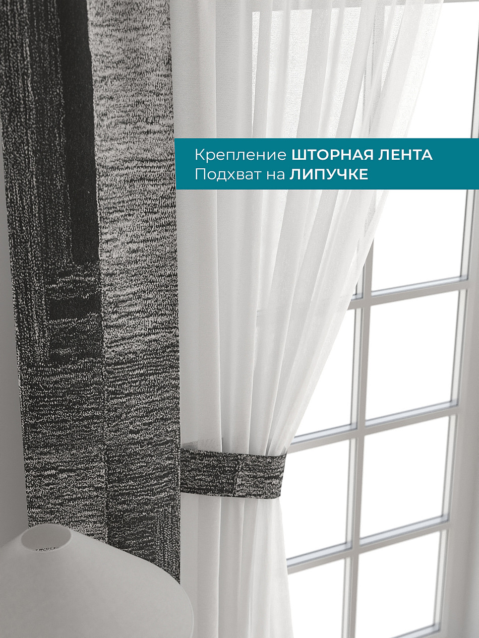 Декоративные подхваты 38х260 см — 2 шт.; Тюль 150х260 см — 2 шт. ( Изменить высоту) Крепление: шторная лента (крючки), кулиска Подробнее