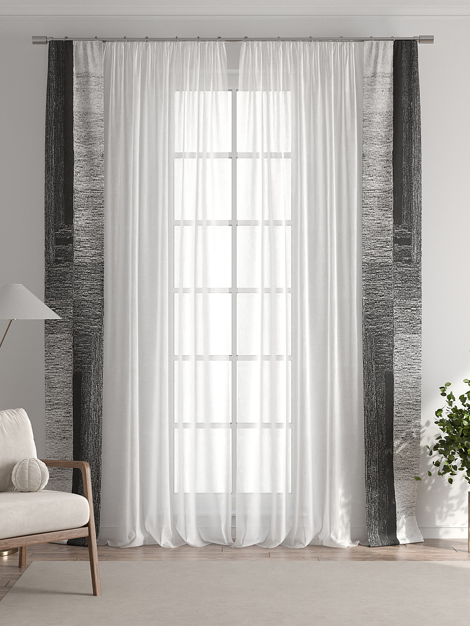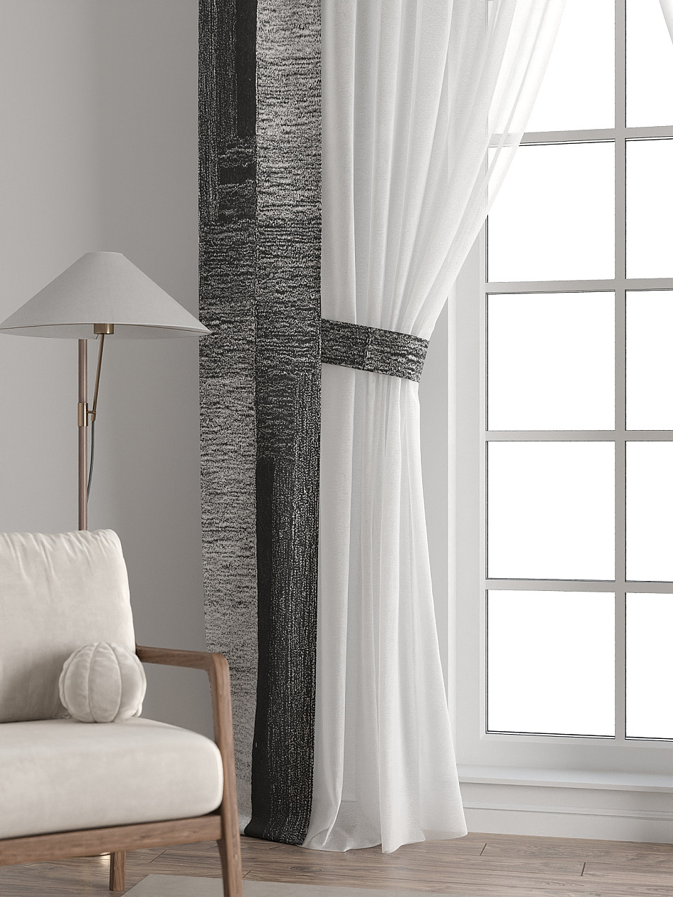 Представляем вам абсолютно новый подход к оформлению окна! Наш комплект белого тюля с узкими цветными шторами-подхватами станет идеальным решением для тех, кто любит, чтобы в комнате было светло и при этом хочет добавить цветовой акцент в интерьер комнаты.