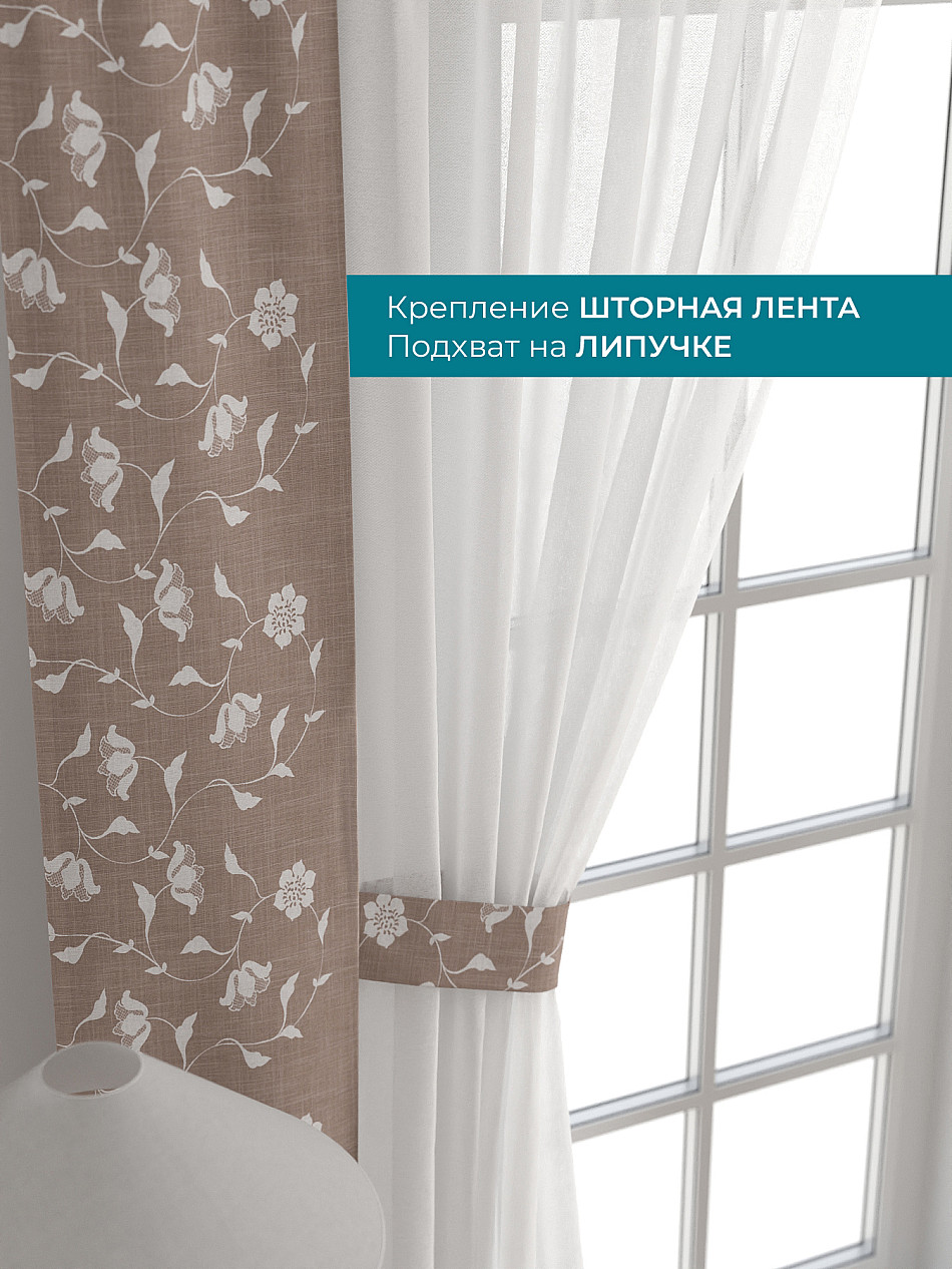 Декоративные подхваты 38х260 см — 2 шт.; Тюль 150х260 см — 2 шт. ( Изменить высоту) Крепление: шторная лента (крючки), кулиска Подробнее