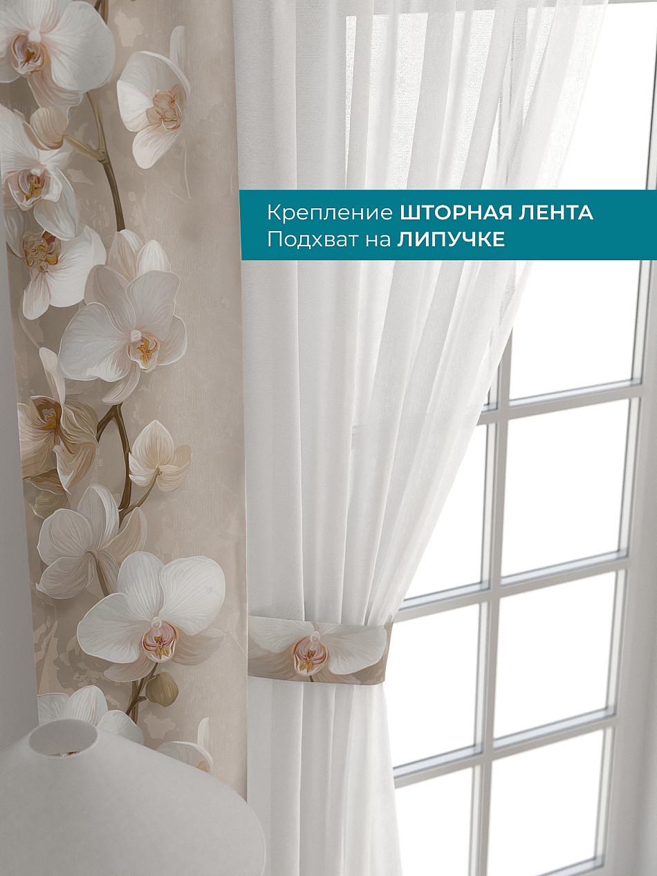 Декоративные подхваты 38х260 см — 2 шт.; Тюль 150х260 см — 2 шт. ( Изменить высоту) Крепление: шторная лента (крючки), кулиска Подробнее
