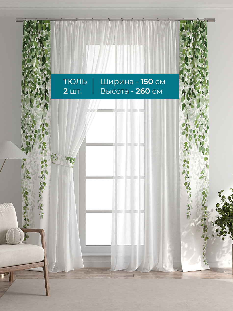 Декоративные подхваты 38х260 см — 2 шт.; Тюль 150х260 см — 2 шт. ( Изменить высоту) Крепление: шторная лента (крючки), кулиска Подробнее