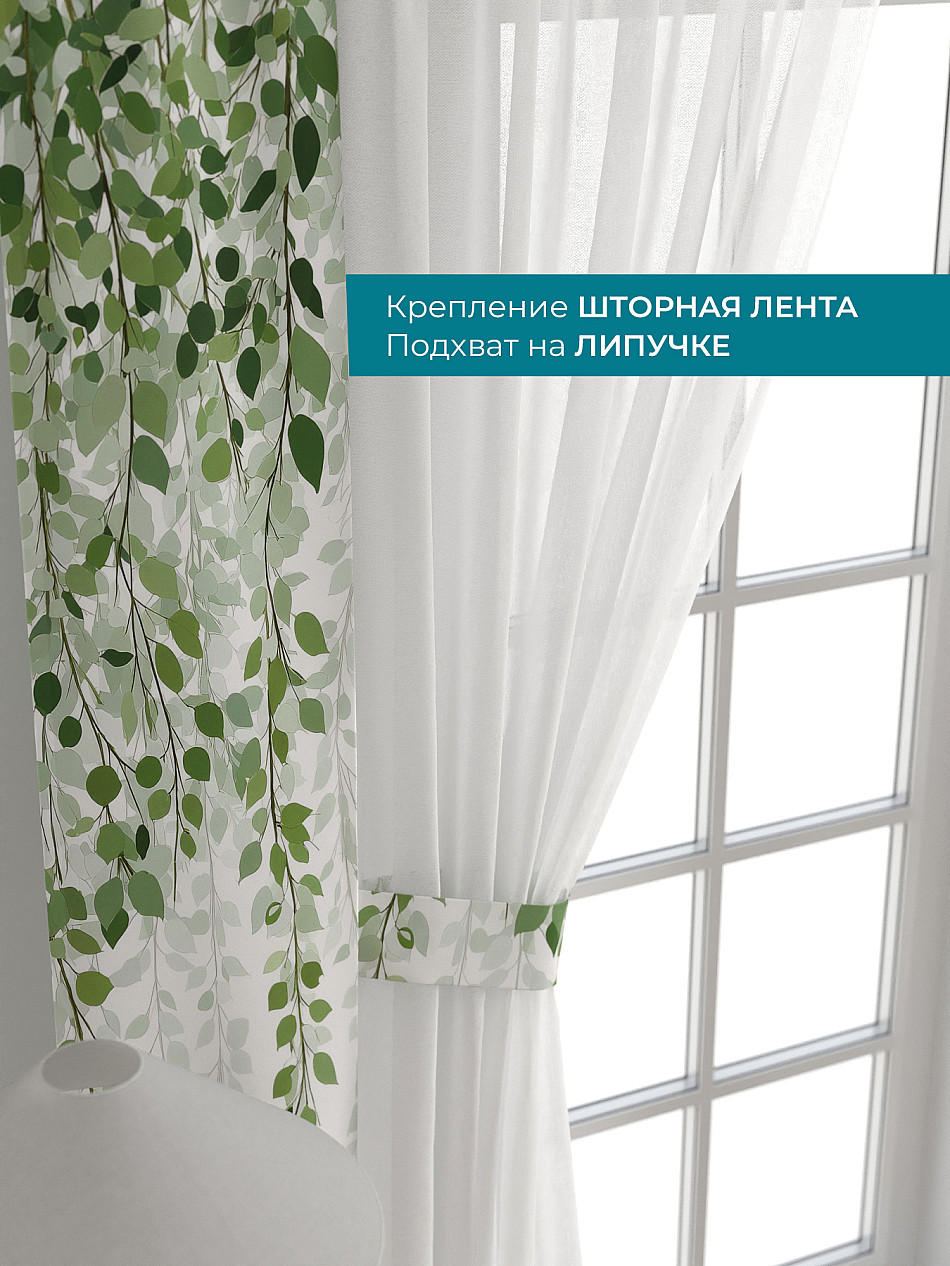 На высоте 125 см. пришит подхват (ширина 10 см.), который позволяет легко зафиксировать тюль или шторы в нужном положении при помощи липучки.