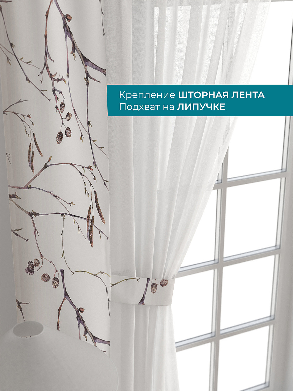 Декоративные подхваты 38х260 см — 2 шт.; Тюль 150х260 см — 2 шт. ( Изменить высоту) Крепление: шторная лента (крючки), кулиска Подробнее