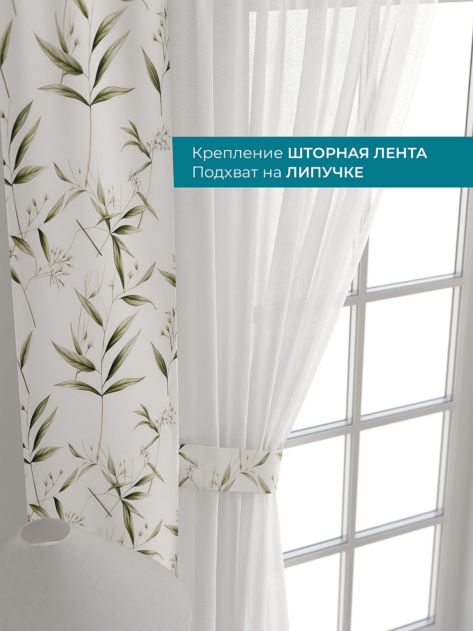 Декоративные подхваты 38х260 см — 2 шт.; Тюль 150х260 см — 2 шт. ( Изменить высоту) Крепление: шторная лента (крючки), кулиска Подробнее