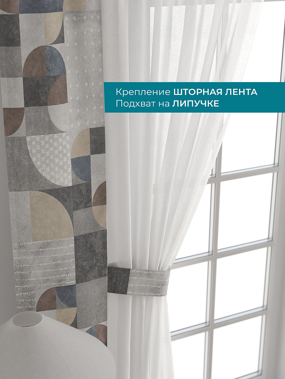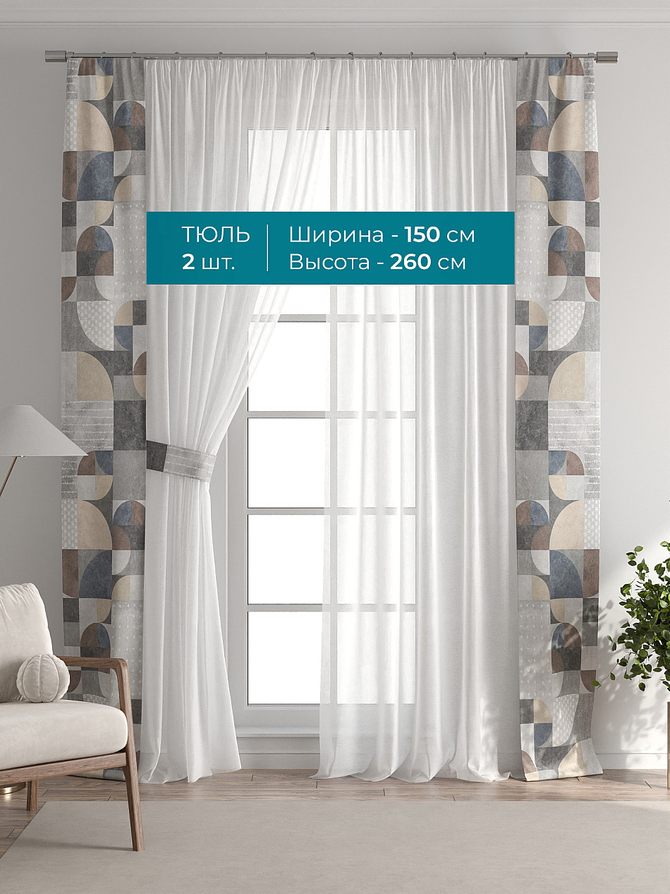 Декоративные подхваты 38х260 см — 2 шт.; Тюль 150х260 см — 2 шт. ( Изменить высоту) Крепление: шторная лента (крючки), кулиска Подробнее
