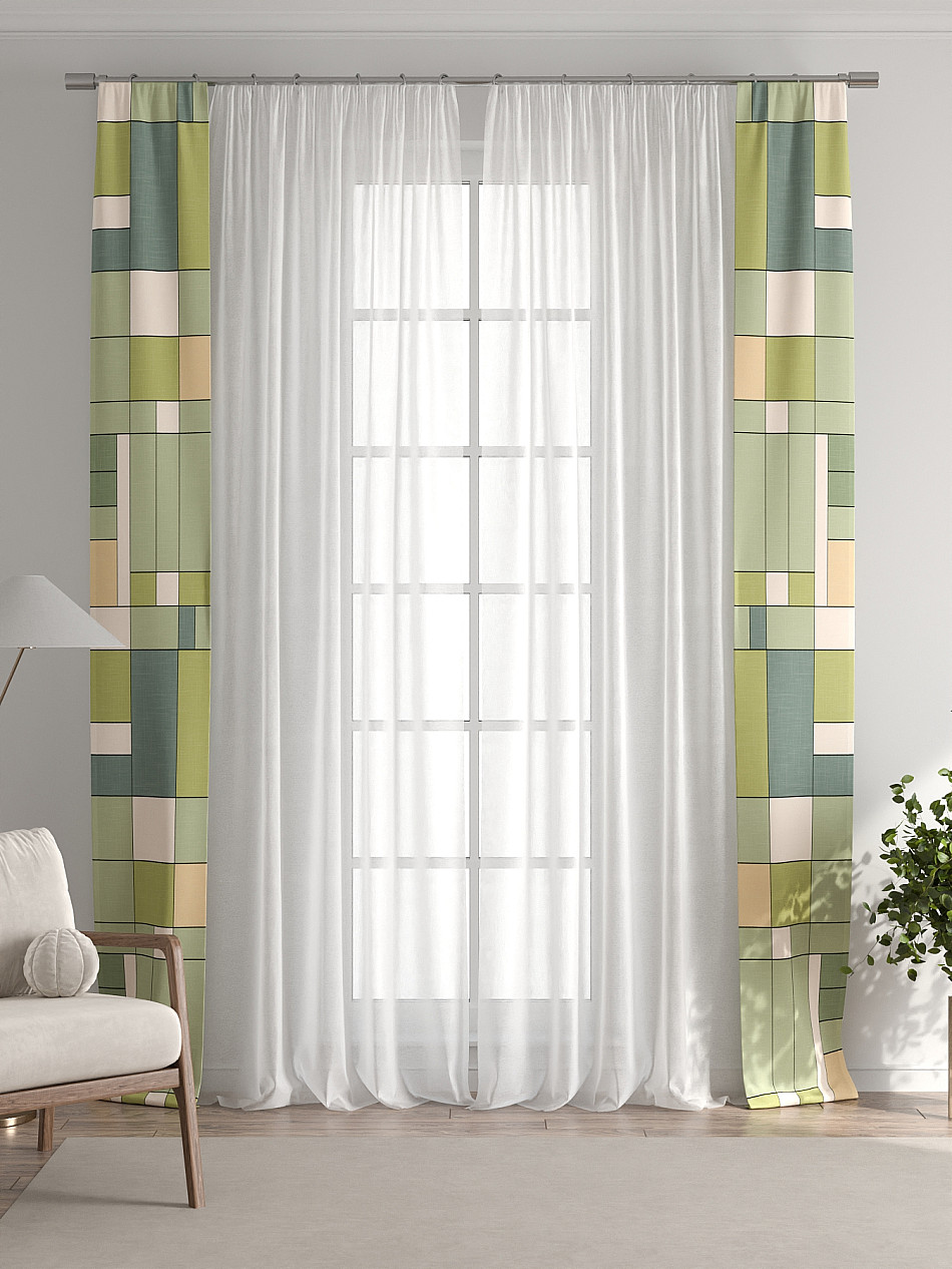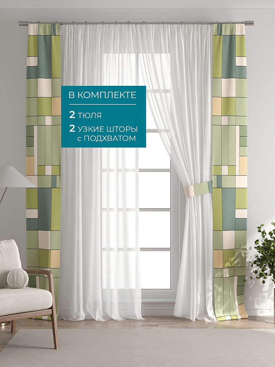 Представляем вам абсолютно новый подход к оформлению окна! Наш комплект белого тюля с узкими цветными шторами-подхватами станет идеальным решением для тех, кто любит, чтобы в комнате было светло и при этом хочет добавить цветовой акцент в интерьер комнаты.