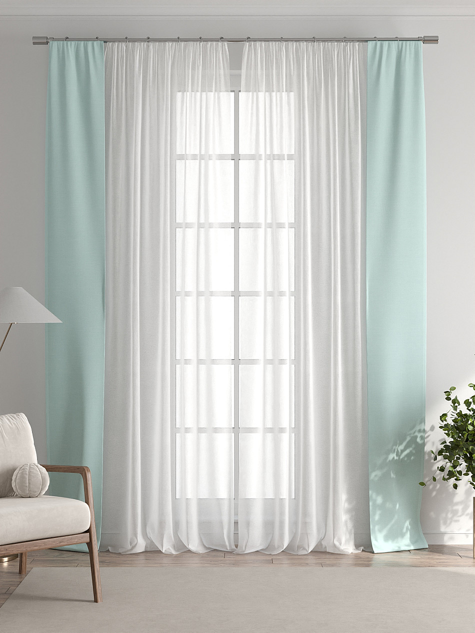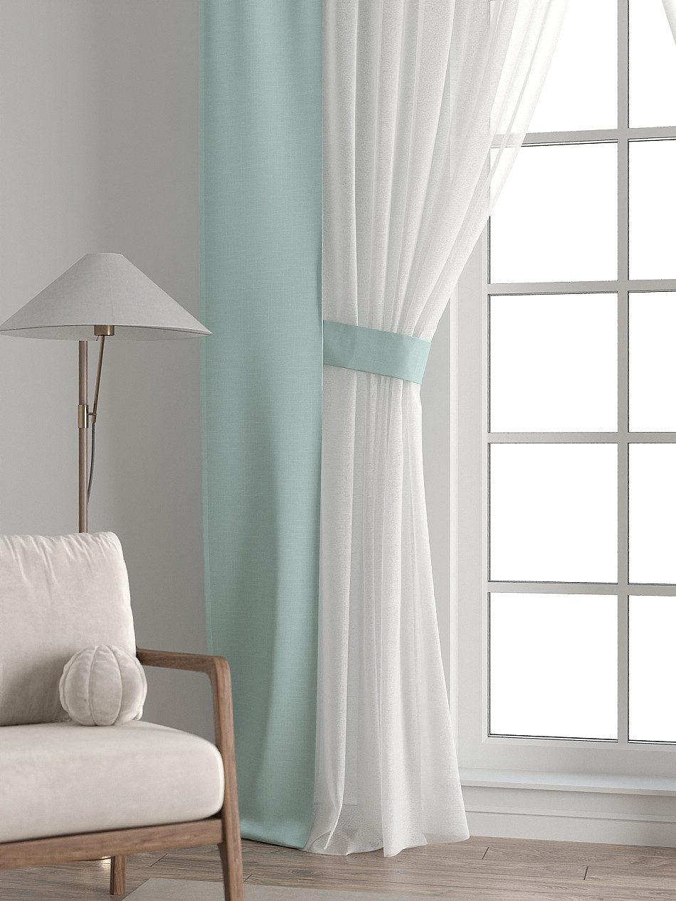 Представляем вам абсолютно новый подход к оформлению окна! Наш комплект белого тюля с узкими цветными шторами-подхватами станет идеальным решением для тех, кто любит, чтобы в комнате было светло и при этом хочет добавить цветовой акцент в интерьер комнаты.