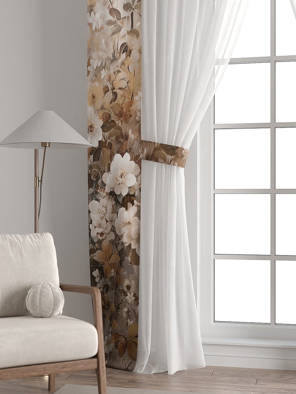 На высоте 125 см. пришит подхват (ширина 10 см.), который позволяет легко зафиксировать тюль или шторы в нужном положении при помощи липучки.