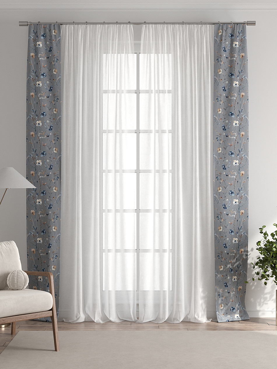 Представляем вам абсолютно новый подход к оформлению окна! Наш комплект белого тюля с узкими цветными шторами-подхватами станет идеальным решением для тех, кто любит, чтобы в комнате было светло и при этом хочет добавить цветовой акцент в интерьер комнаты.