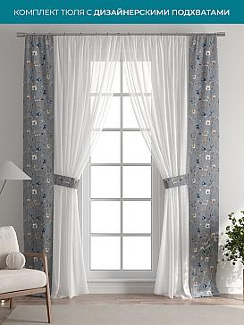 Декоративные подхваты 38х260 см — 2 шт.; Тюль 150х260 см — 2 шт. ( Изменить высоту) Крепление: шторная лента (крючки), кулиска Подробнее
