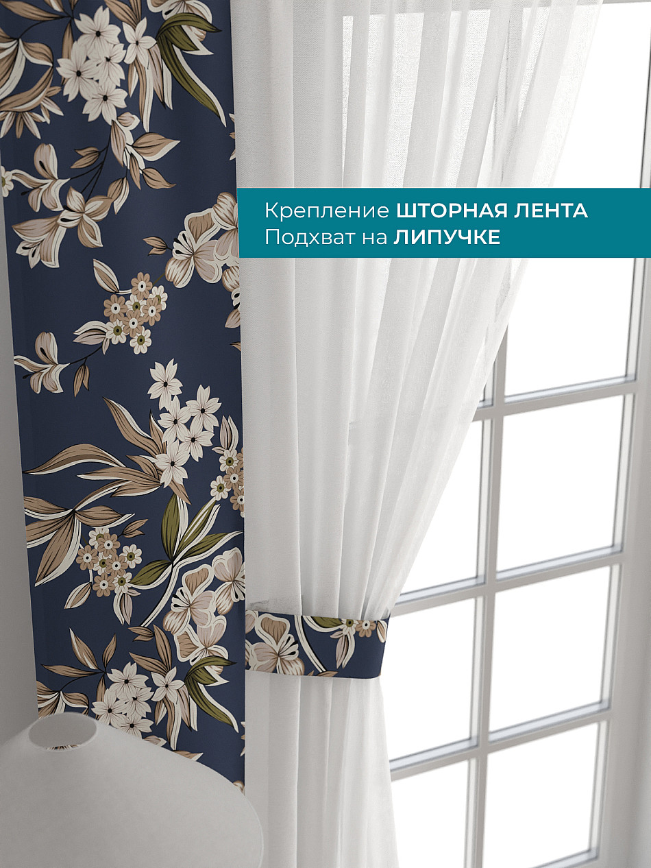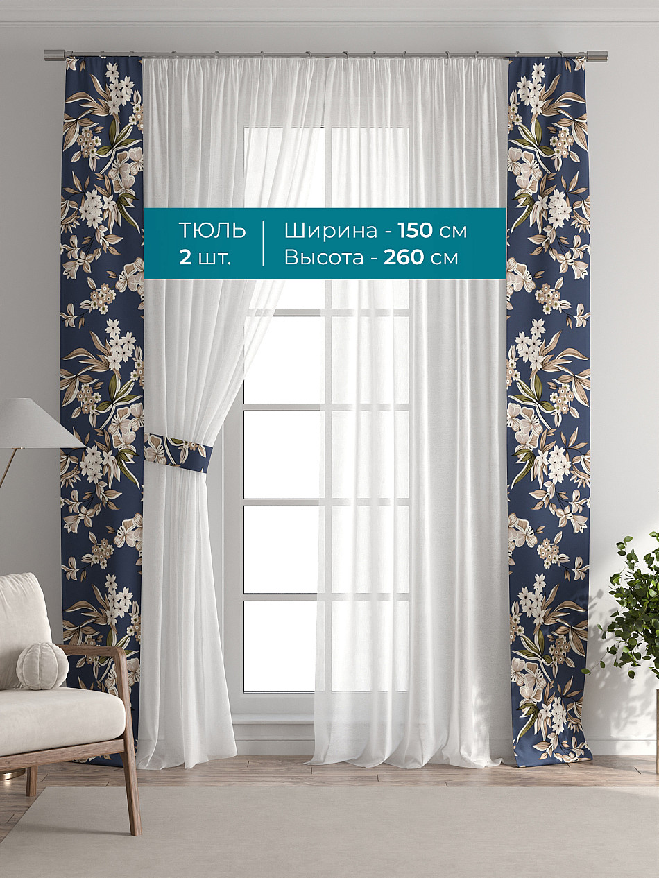 Декоративные подхваты 38х260 см — 2 шт.; Тюль 150х260 см — 2 шт. ( Изменить высоту) Крепление: шторная лента (крючки), кулиска Подробнее