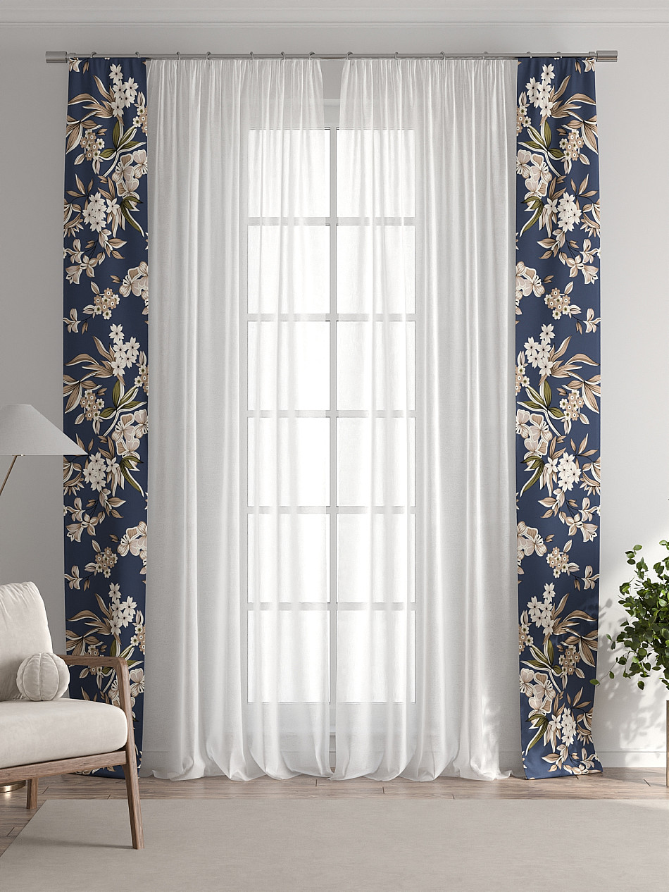 Комплект готов к развешиванию. По верхнему краю пристрочена шторная лента 6 см, с 2-мя рядами петель под крючки, что позволяет регулировать высоту. Одновременно имеется кулиска (карман для штанги), в которую можно продеть карниз любого диаметра.
