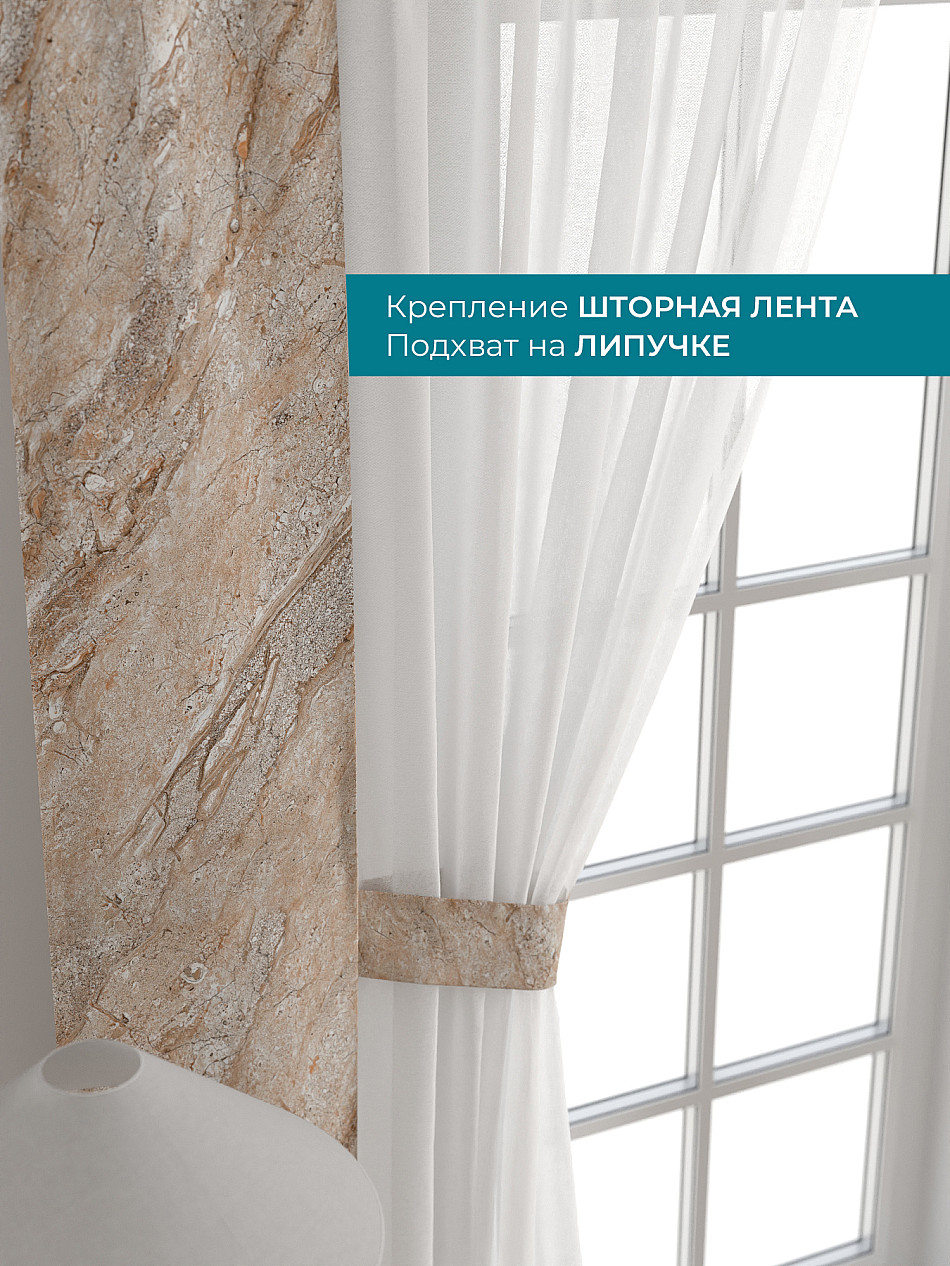 Декоративные подхваты 38х260 см — 2 шт.; Тюль 150х260 см — 2 шт. ( Изменить высоту) Крепление: шторная лента (крючки), кулиска Подробнее