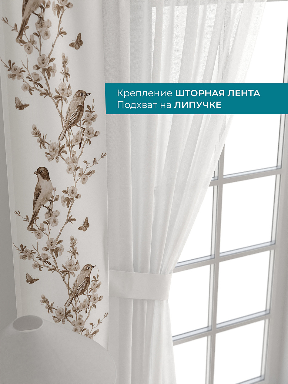 Декоративные подхваты 38х260 см — 2 шт.; Тюль 150х260 см — 2 шт. ( Изменить высоту) Крепление: шторная лента (крючки), кулиска Подробнее