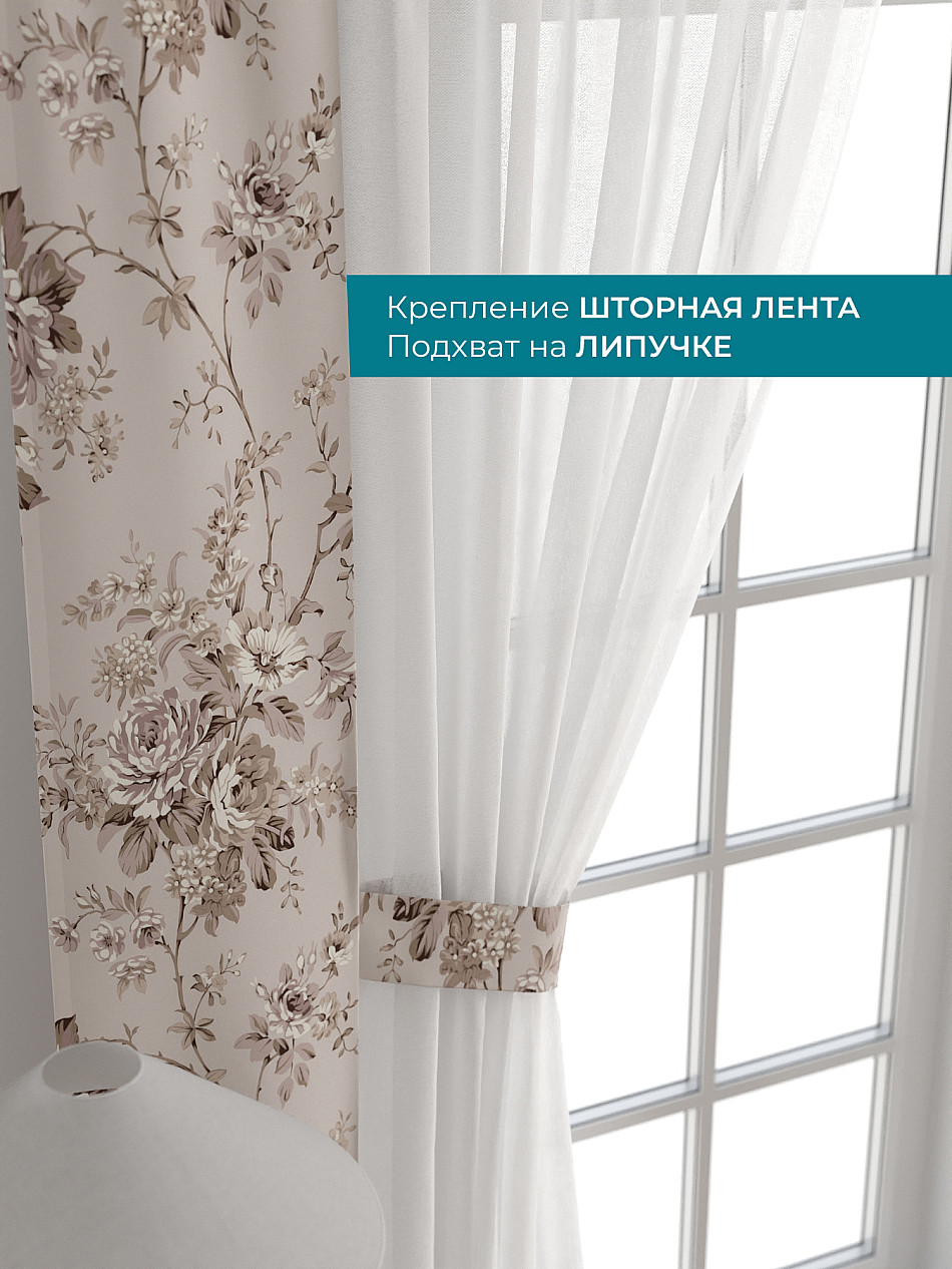 Декоративные подхваты 38х260 см — 2 шт.; Тюль 150х260 см — 2 шт. ( Изменить высоту) Крепление: шторная лента (крючки), кулиска Подробнее
