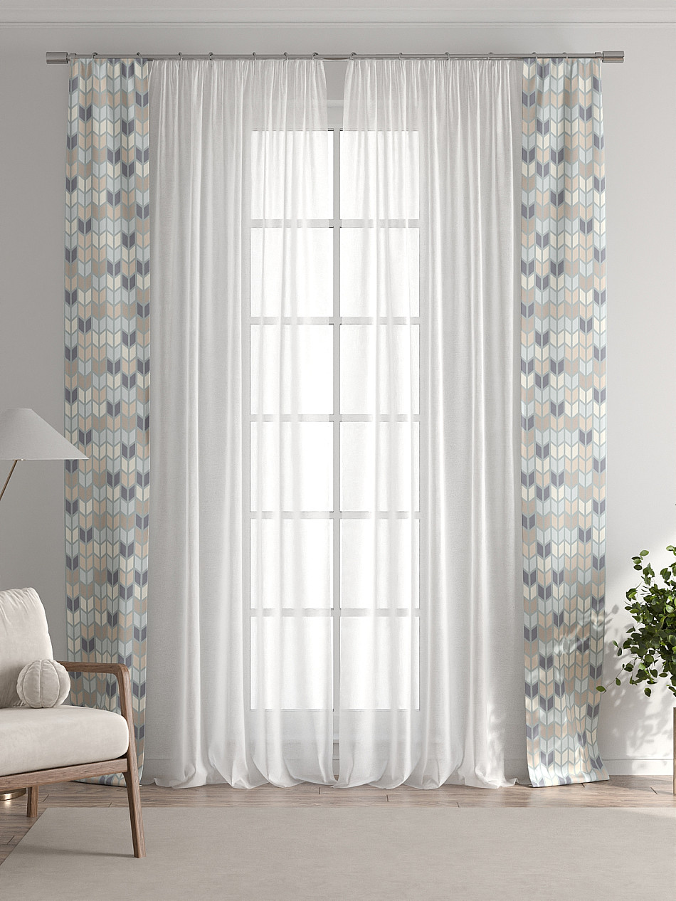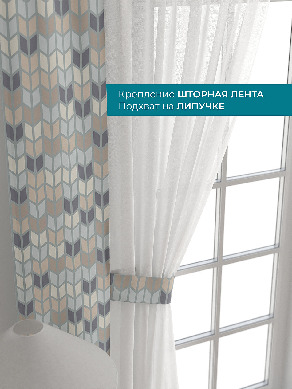 Декоративные подхваты 38х260 см — 2 шт.; Тюль 150х260 см — 2 шт. ( Изменить высоту) Крепление: шторная лента (крючки), кулиска Подробнее