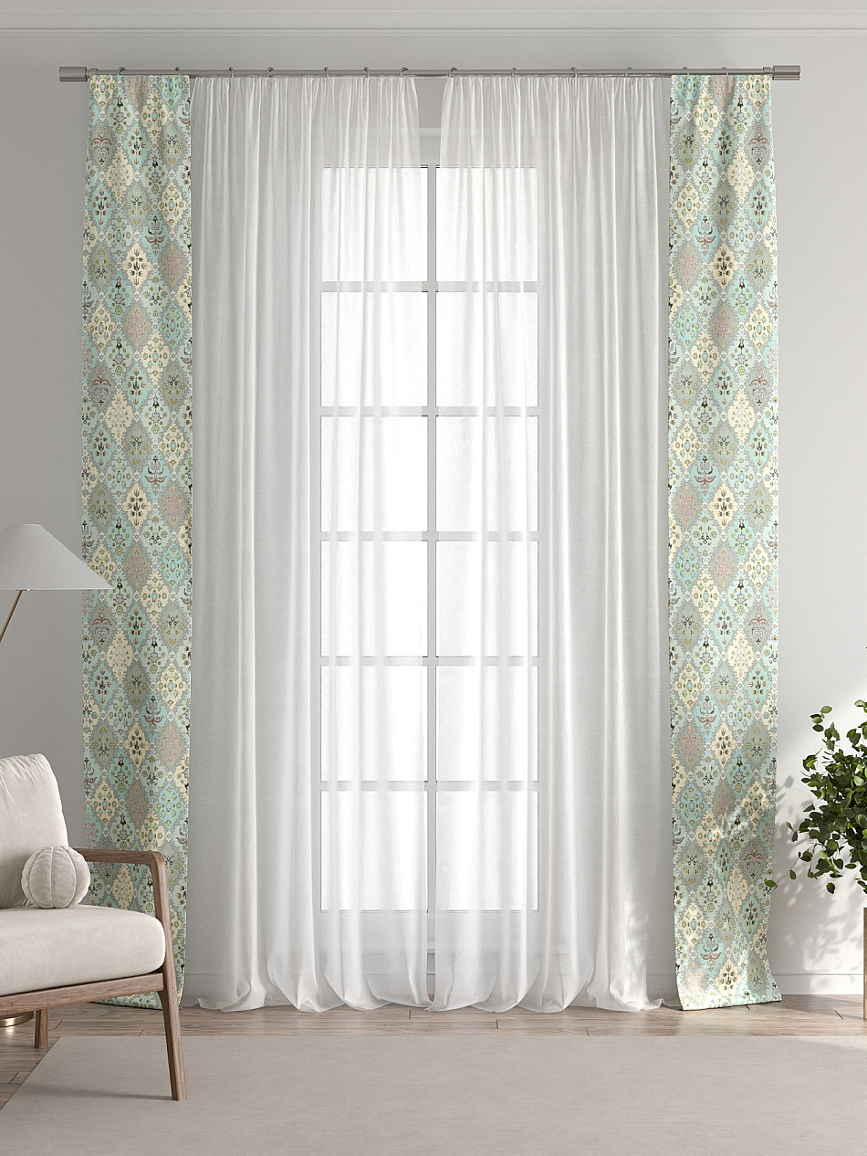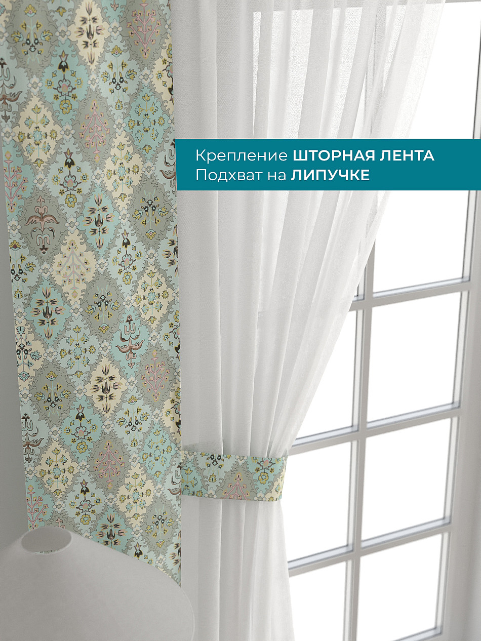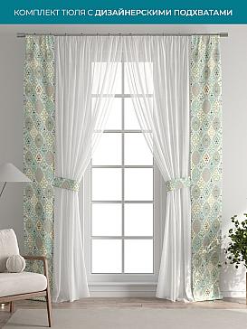 Декоративные подхваты 38х260 см — 2 шт.; Тюль 150х260 см — 2 шт. ( Изменить высоту) Крепление: шторная лента (крючки), кулиска Подробнее
