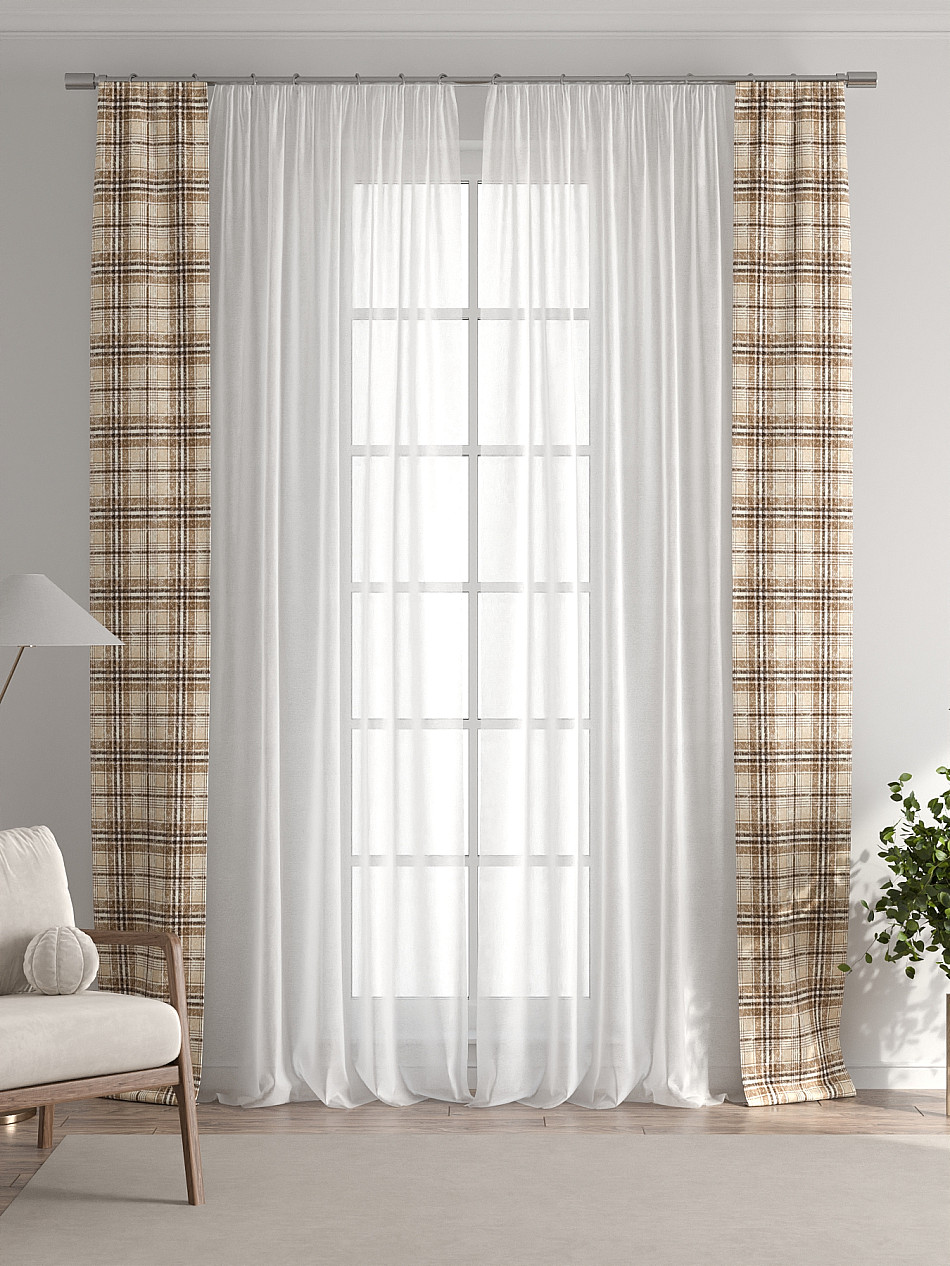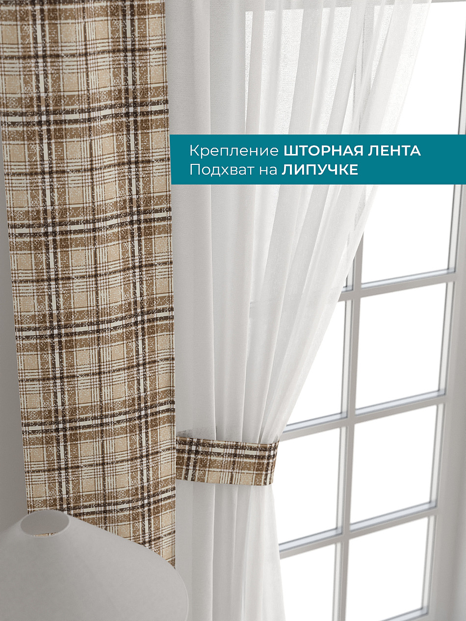 Декоративные подхваты 38х260 см — 2 шт.; Тюль 150х260 см — 2 шт. ( Изменить высоту) Крепление: шторная лента (крючки), кулиска Подробнее