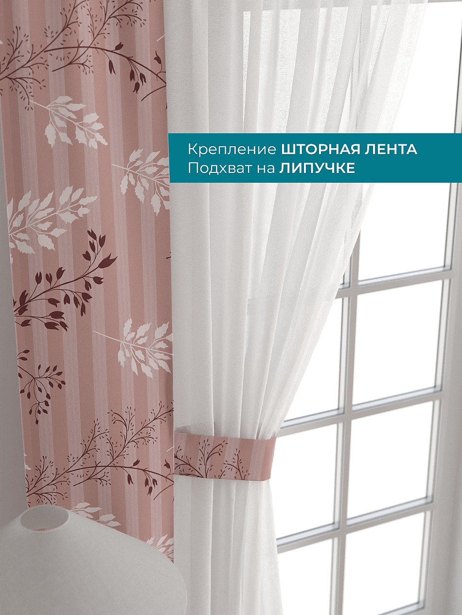 Декоративные подхваты 38х260 см — 2 шт.; Тюль 150х260 см — 2 шт. ( Изменить высоту) Крепление: шторная лента (крючки), кулиска Подробнее