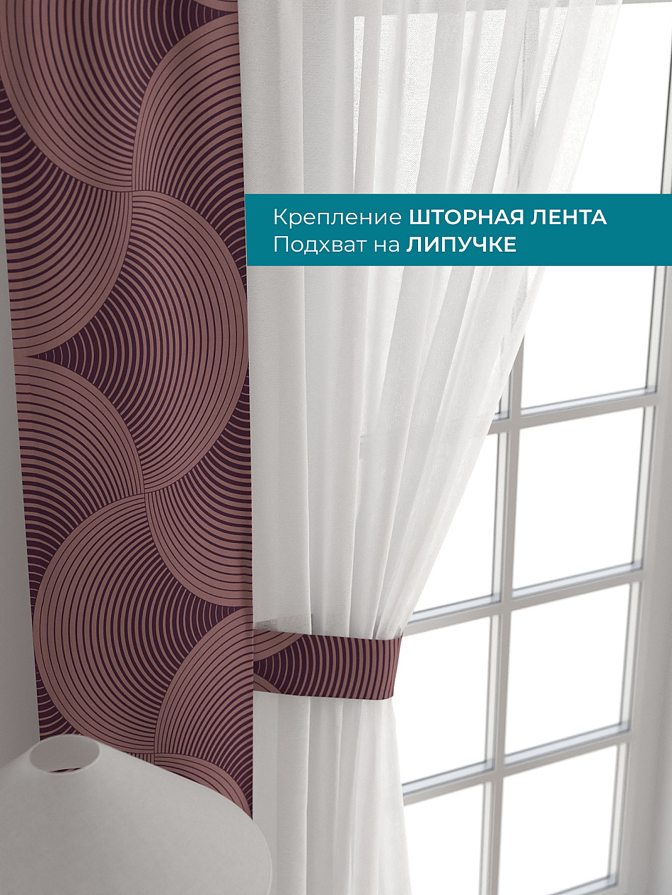 Декоративные подхваты 38х260 см — 2 шт.; Тюль 150х260 см — 2 шт. ( Изменить высоту) Крепление: шторная лента (крючки), кулиска Подробнее
