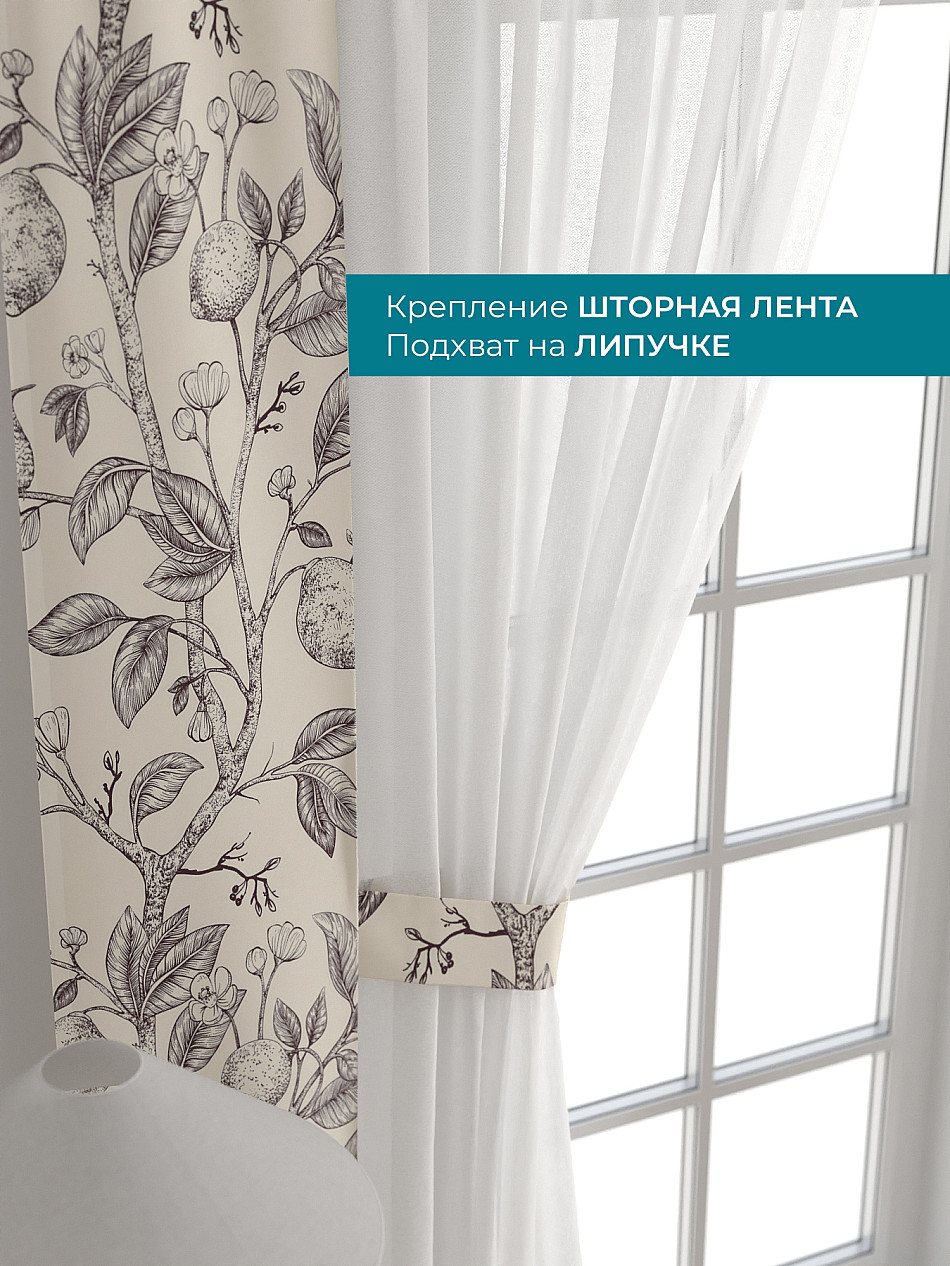 Декоративные подхваты 38х260 см — 2 шт.; Тюль 150х260 см — 2 шт. ( Изменить высоту) Крепление: шторная лента (крючки), кулиска Подробнее