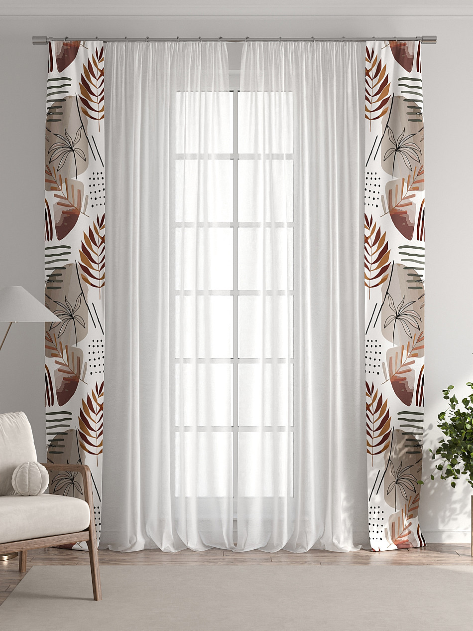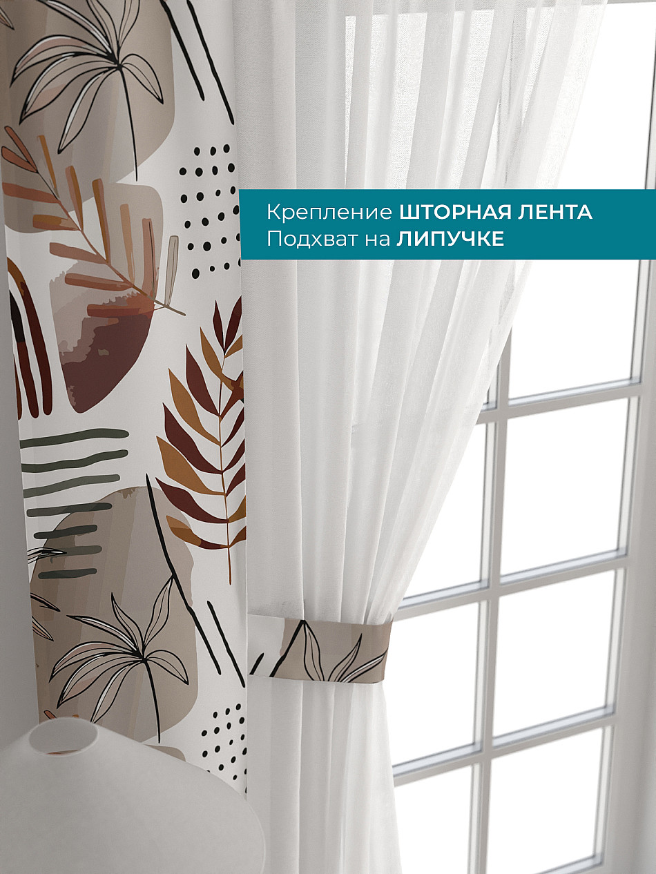 Декоративные подхваты 38х260 см — 2 шт.; Тюль 150х260 см — 2 шт. ( Изменить высоту) Крепление: шторная лента (крючки), кулиска Подробнее