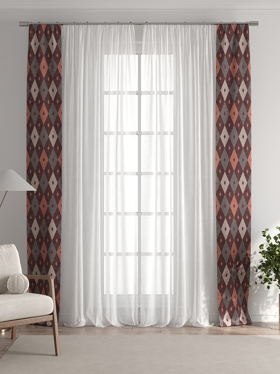 Представляем вам абсолютно новый подход к оформлению окна! Наш комплект белого тюля с узкими цветными шторами-подхватами станет идеальным решением для тех, кто любит, чтобы в комнате было светло и при этом хочет добавить цветовой акцент в интерьер комнаты.