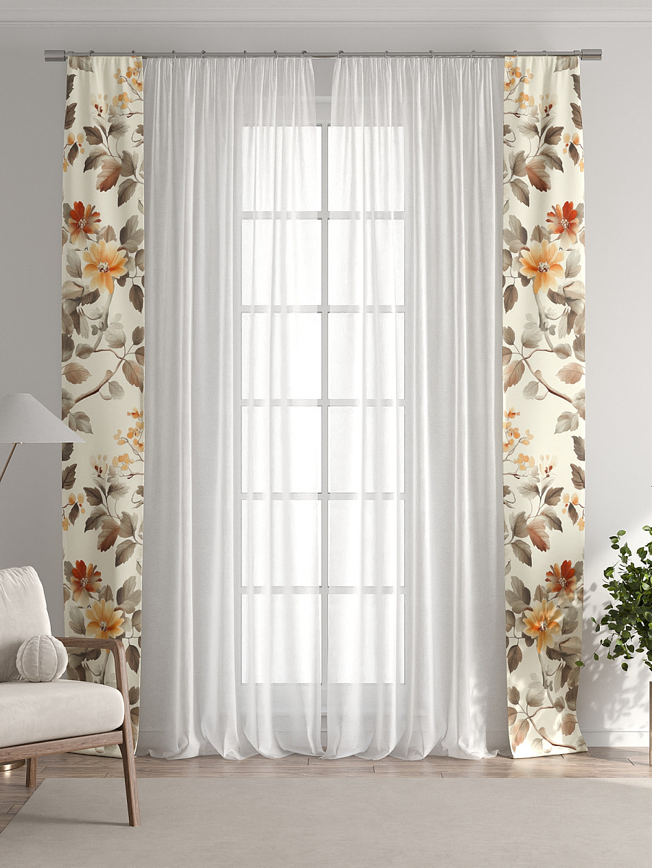 Комплект готов к развешиванию. По верхнему краю пристрочена шторная лента 6 см, с 2-мя рядами петель под крючки, что позволяет регулировать высоту. Одновременно имеется кулиска (карман для штанги), в которую можно продеть карниз любого диаметра.