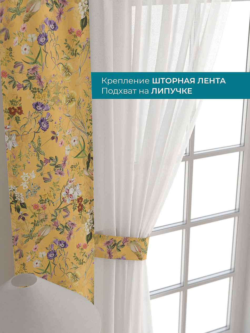 На высоте 125 см. пришит подхват (ширина 10 см.), который позволяет легко зафиксировать тюль или шторы в нужном положении при помощи липучки.