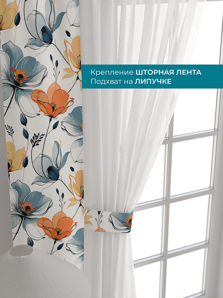 На высоте 125 см. пришит подхват (ширина 10 см.), который позволяет легко зафиксировать тюль или шторы в нужном положении при помощи липучки.