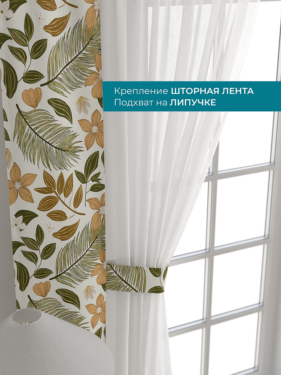 Декоративные подхваты 38х260 см — 2 шт.; Тюль 150х260 см — 2 шт. ( Изменить высоту) Крепление: шторная лента (крючки), кулиска Подробнее