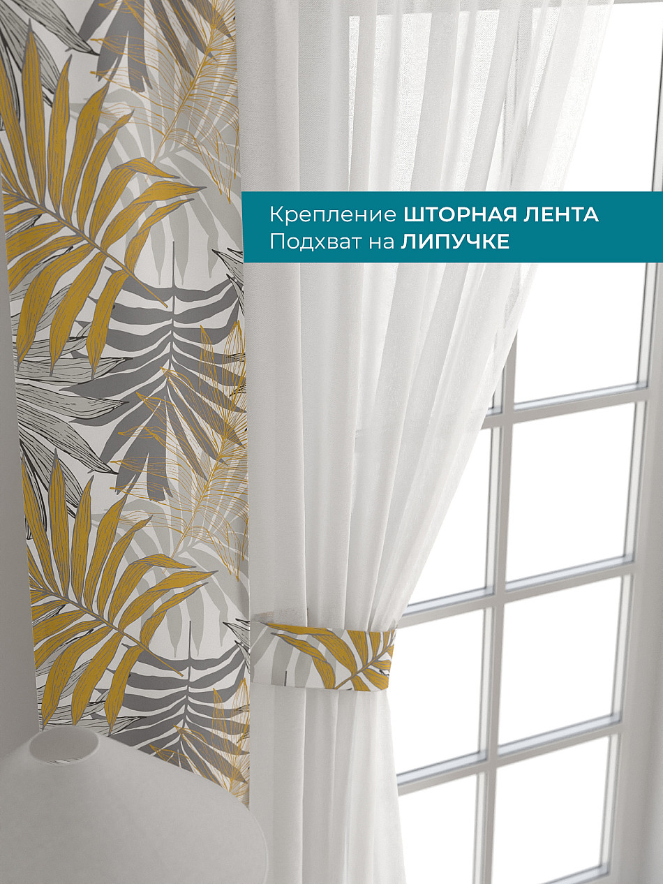 Декоративные подхваты 38х260 см — 2 шт.; Тюль 150х260 см — 2 шт. ( Изменить высоту) Крепление: шторная лента (крючки), кулиска Подробнее