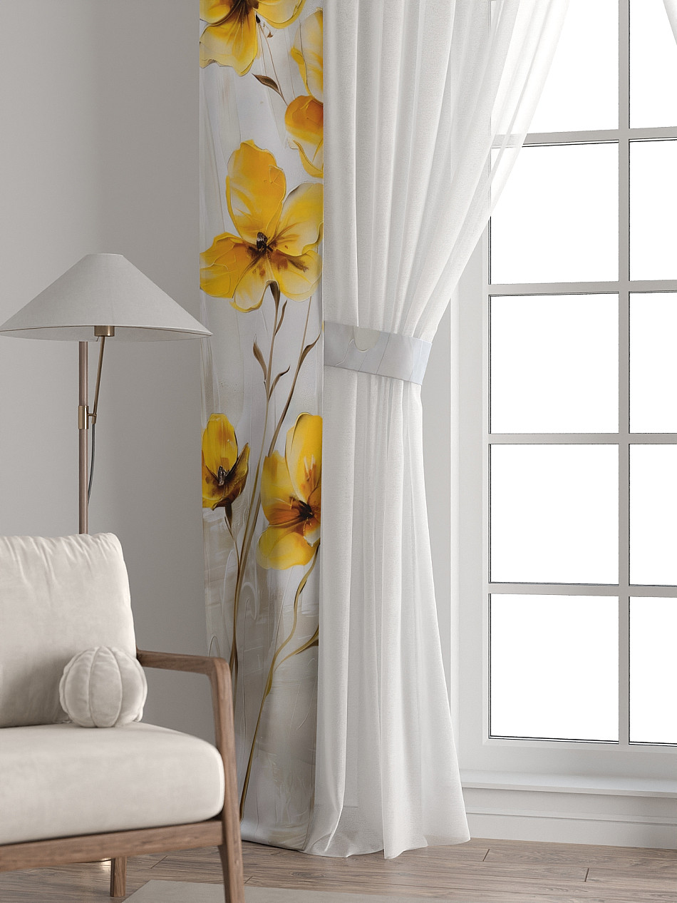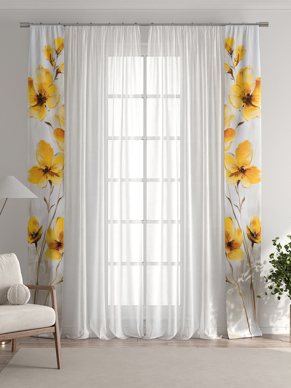 Представляем вам абсолютно новый подход к оформлению окна! Наш комплект белого тюля с узкими цветными шторами-подхватами станет идеальным решением для тех, кто любит, чтобы в комнате было светло и при этом хочет добавить цветовой акцент в интерьер комнаты.