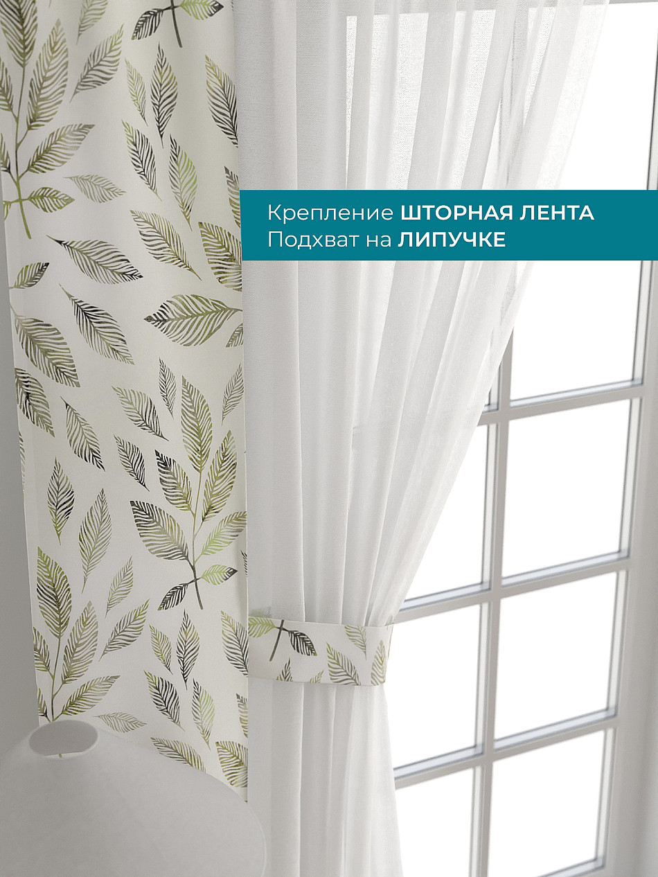 На высоте 125 см. пришит подхват (ширина 10 см.), который позволяет легко зафиксировать тюль или шторы в нужном положении при помощи липучки.
