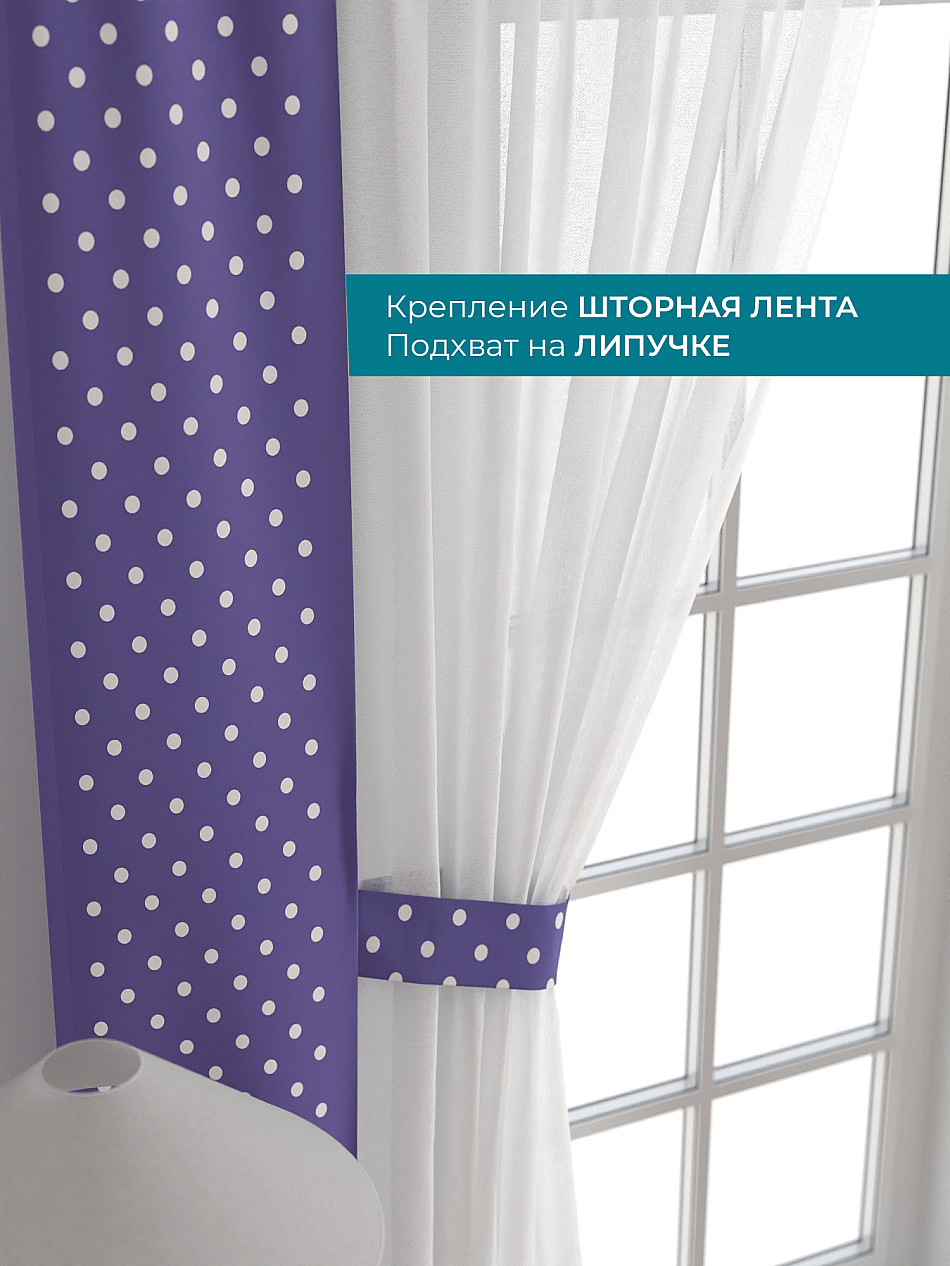 На высоте 125 см. пришит подхват (ширина 10 см.), который позволяет легко зафиксировать тюль или шторы в нужном положении при помощи липучки.