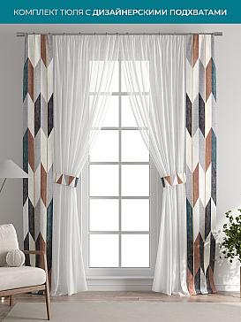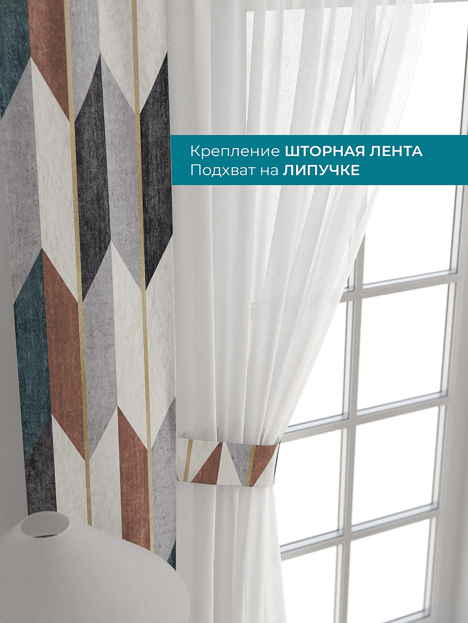 Декоративные подхваты 38х260 см — 2 шт.; Тюль 150х260 см — 2 шт. ( Изменить высоту) Крепление: шторная лента (крючки), кулиска Подробнее