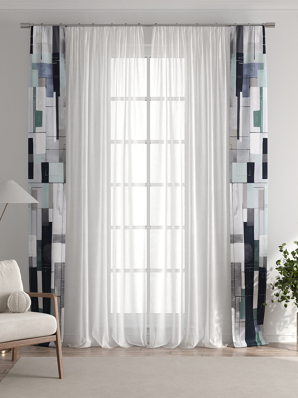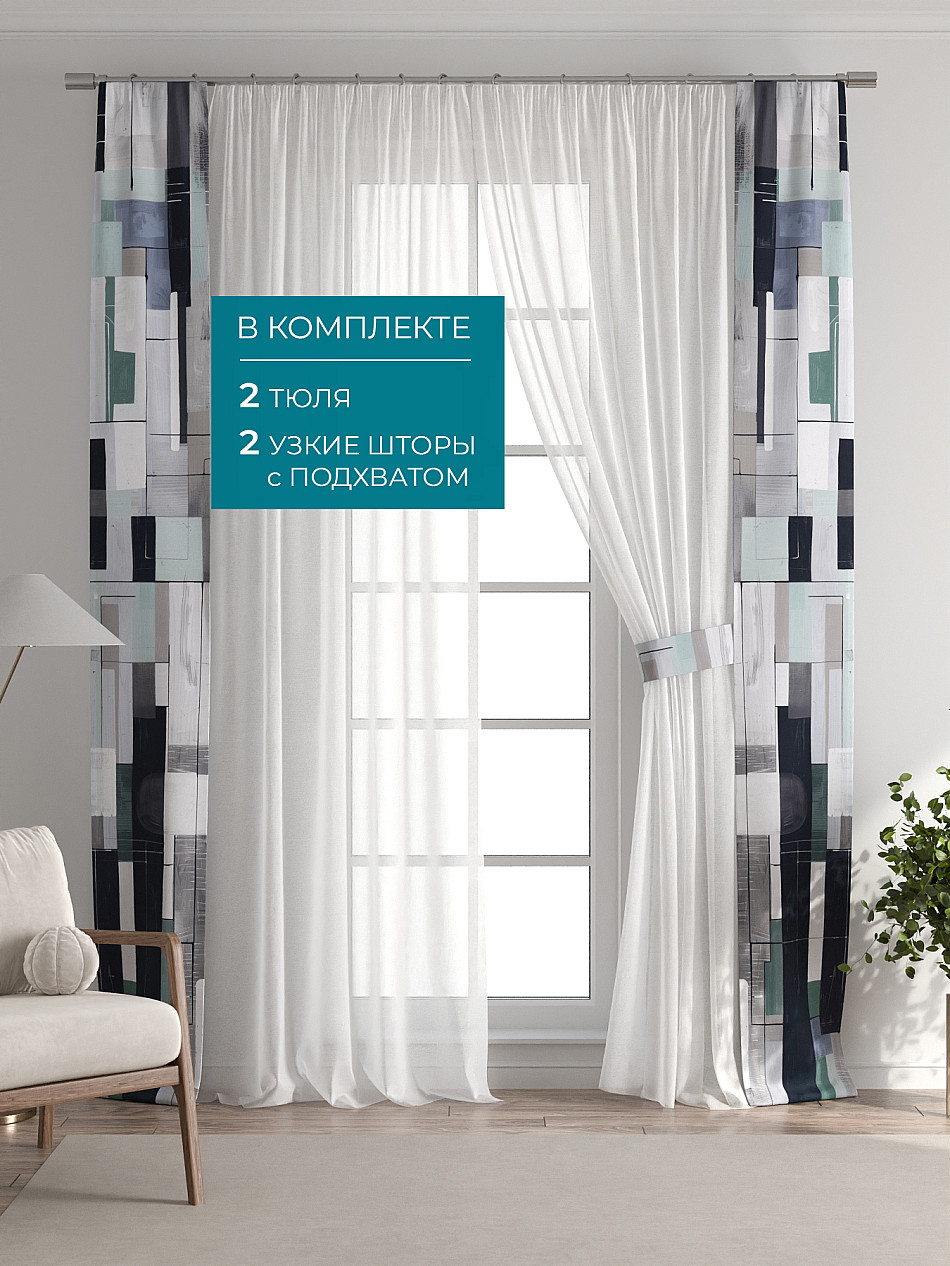 Представляем вам абсолютно новый подход к оформлению окна! Наш комплект белого тюля с узкими цветными шторами-подхватами станет идеальным решением для тех, кто любит, чтобы в комнате было светло и при этом хочет добавить цветовой акцент в интерьер комнаты.