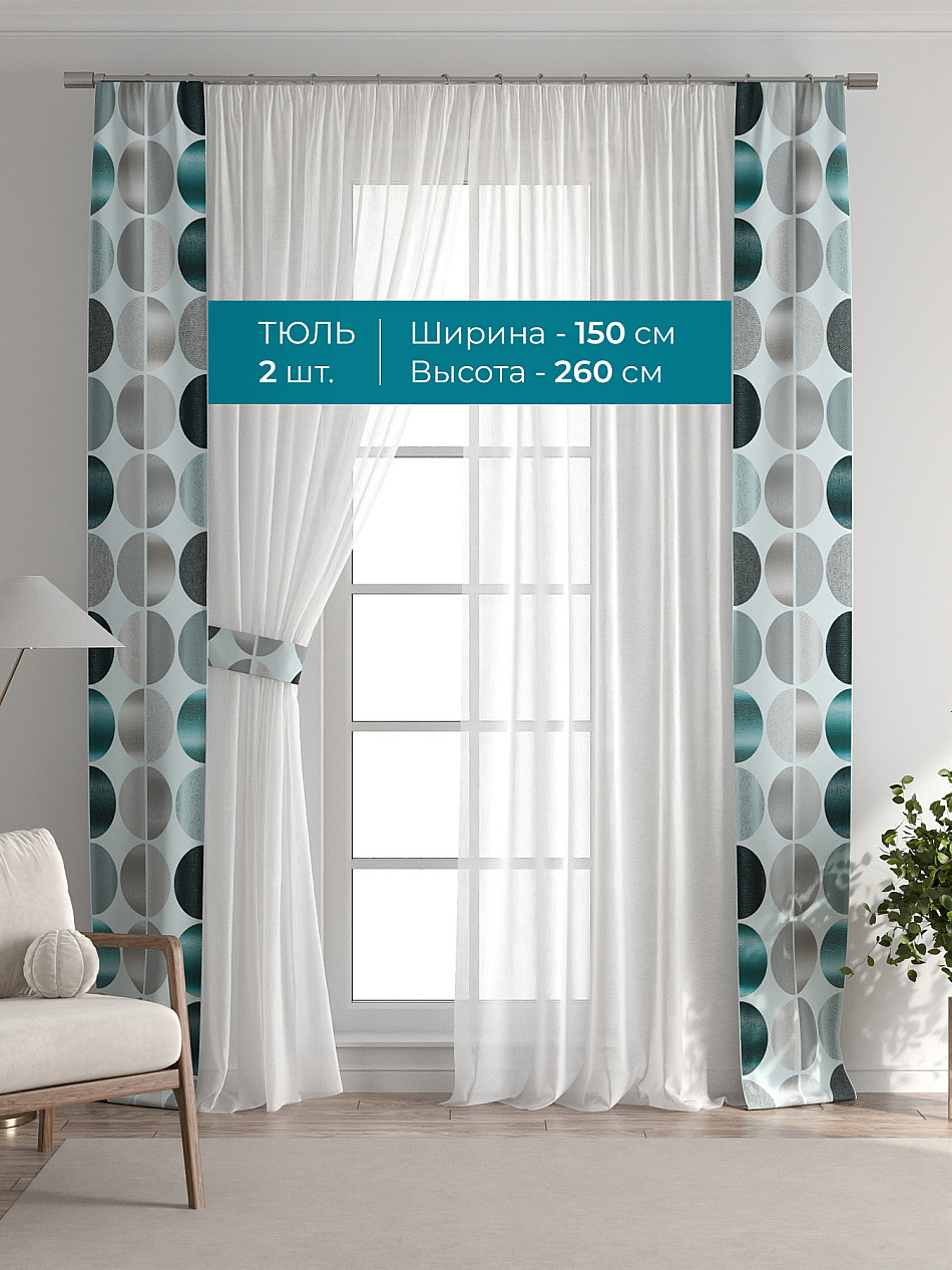 Декоративные подхваты 38х260 см — 2 шт.; Тюль 150х260 см — 2 шт. ( Изменить высоту) Крепление: шторная лента (крючки), кулиска Подробнее