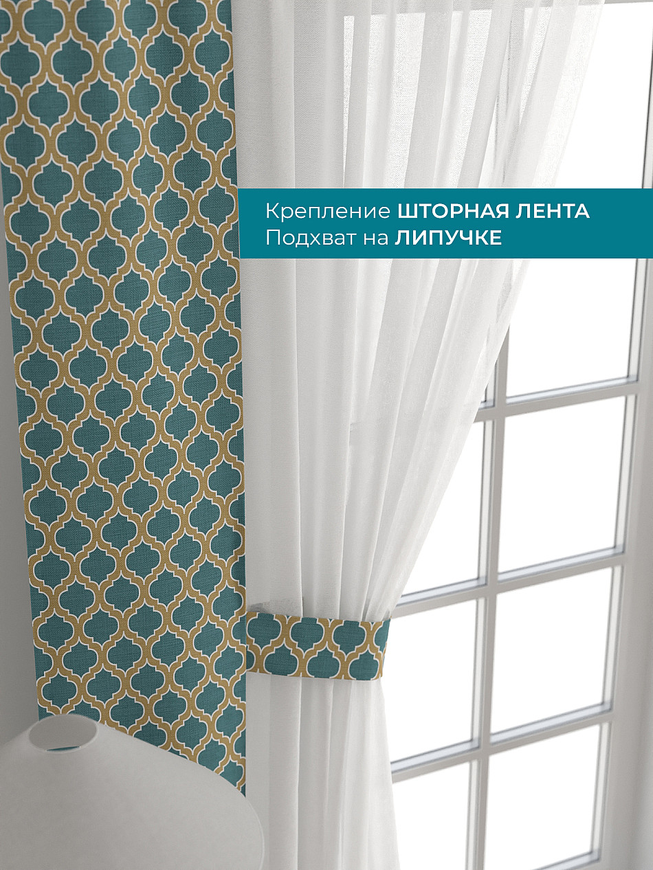 Декоративные подхваты 38х260 см — 2 шт.; Тюль 150х260 см — 2 шт. ( Изменить высоту) Крепление: шторная лента (крючки), кулиска Подробнее