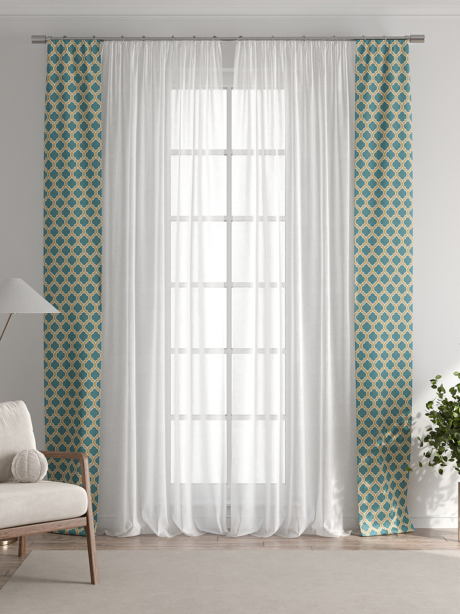 Представляем вам абсолютно новый подход к оформлению окна! Наш комплект белого тюля с узкими цветными шторами-подхватами станет идеальным решением для тех, кто любит, чтобы в комнате было светло и при этом хочет добавить цветовой акцент в интерьер комнаты.
