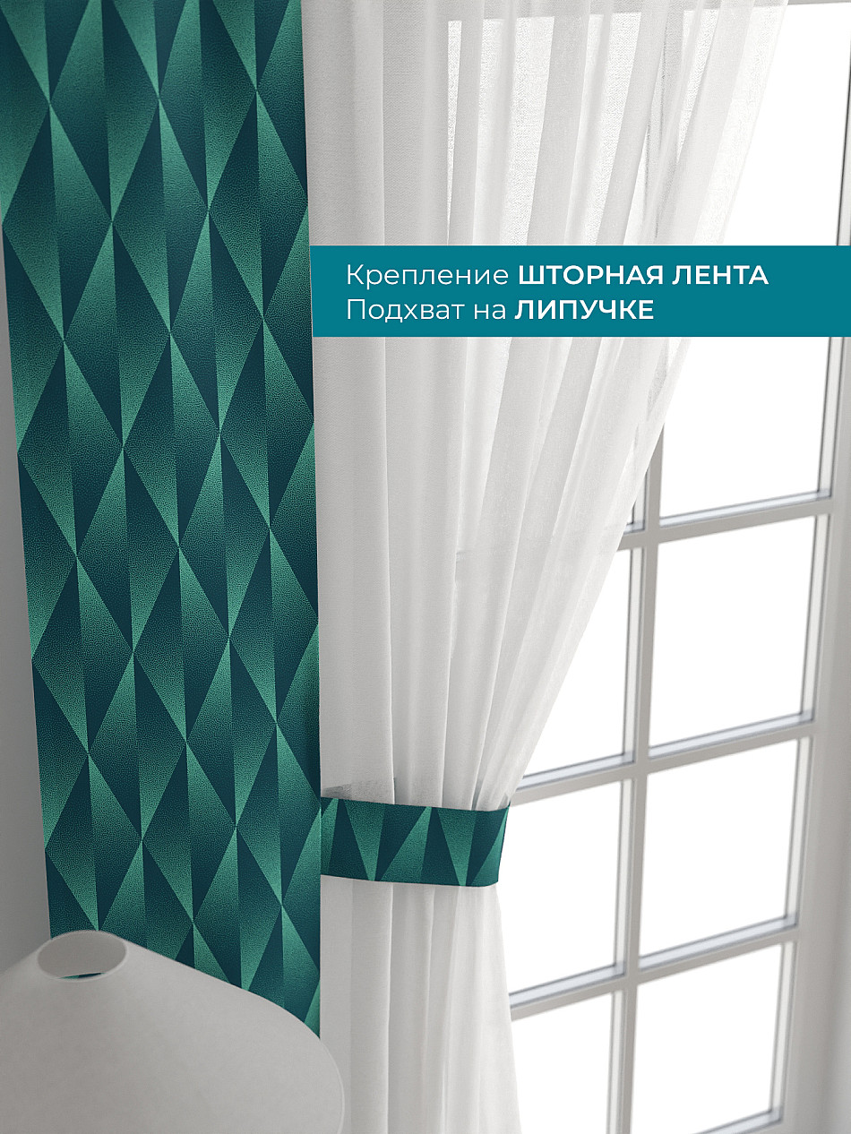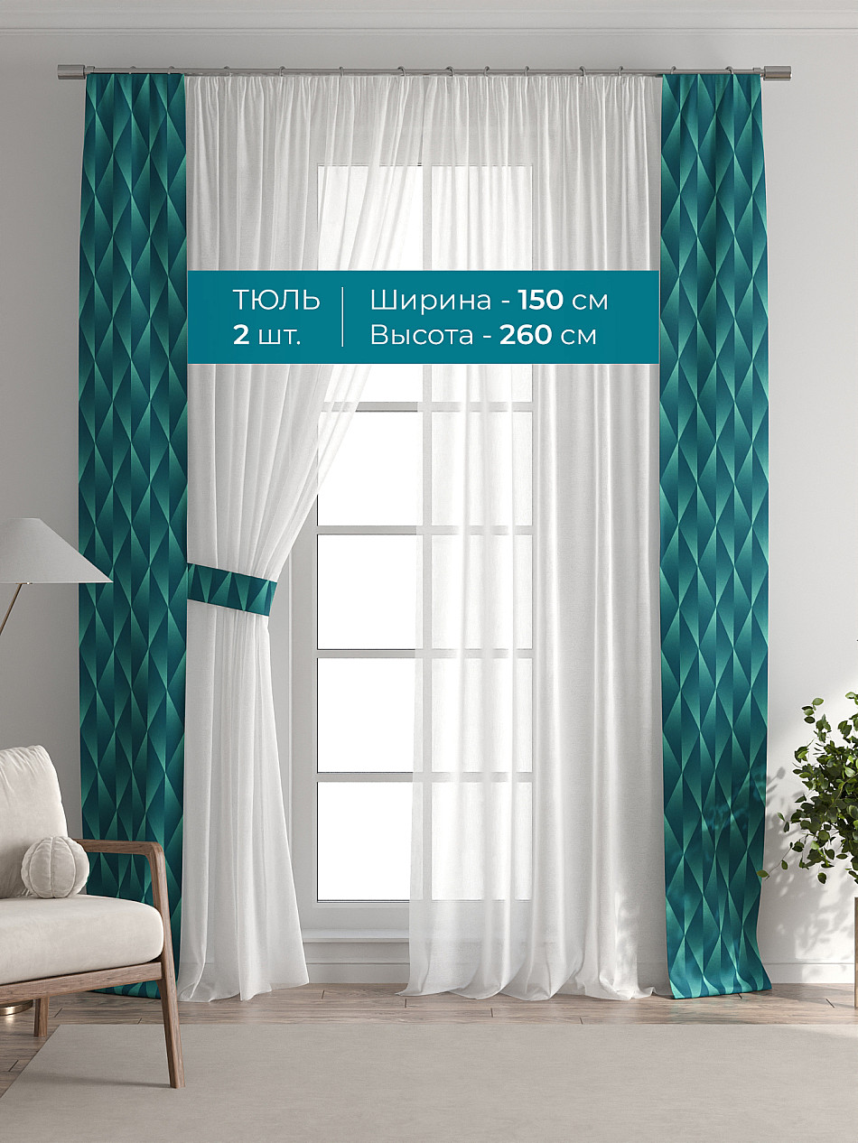 Декоративные подхваты 38х260 см — 2 шт.; Тюль 150х260 см — 2 шт. ( Изменить высоту) Крепление: шторная лента (крючки), кулиска Подробнее