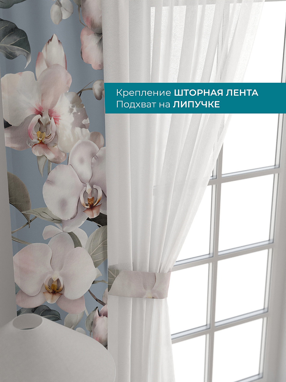 На высоте 125 см. пришит подхват (ширина 10 см.), который позволяет легко зафиксировать тюль или шторы в нужном положении при помощи липучки.