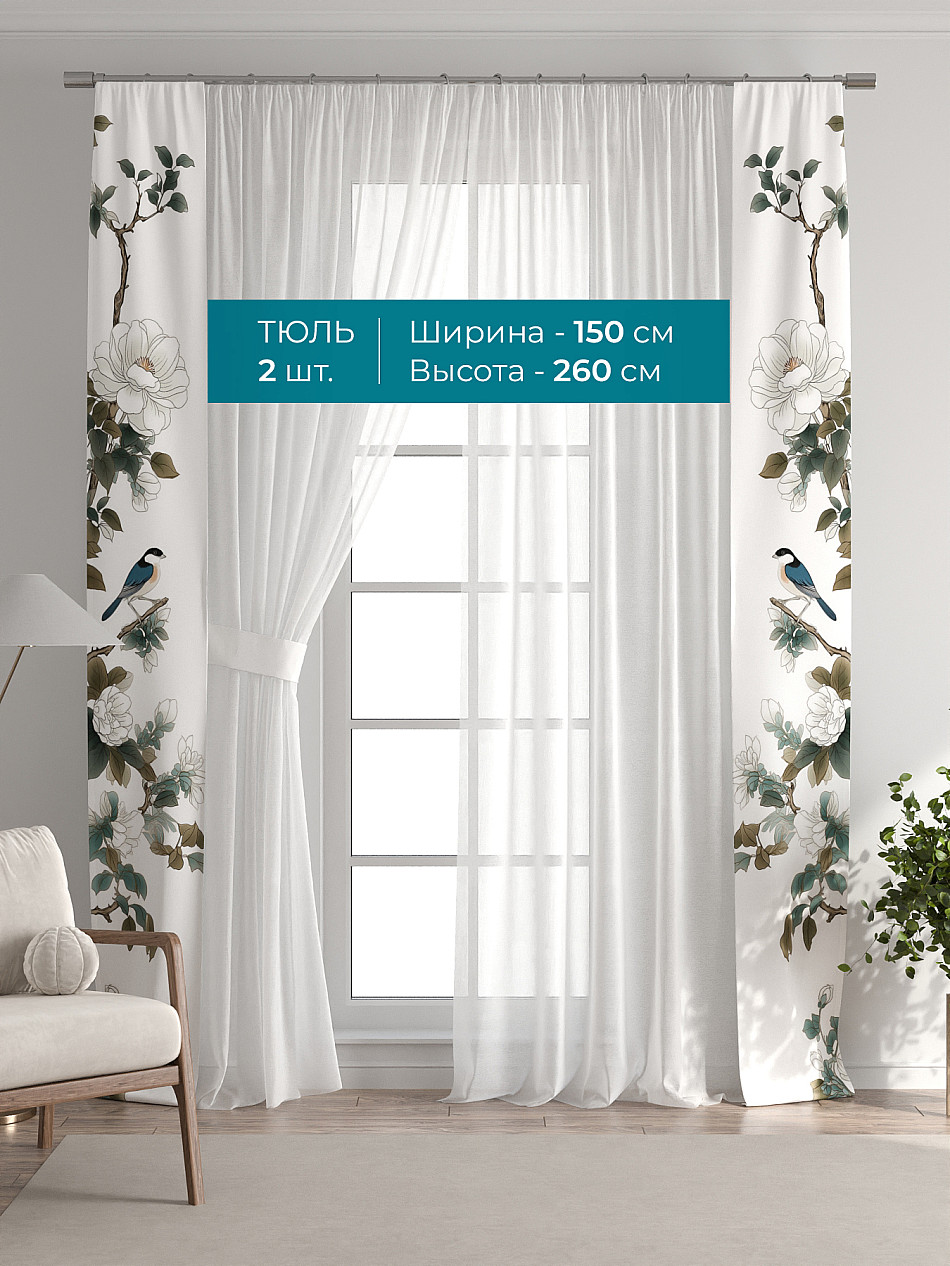 Декоративные подхваты 38х260 см — 2 шт.; Тюль 150х260 см — 2 шт. ( Изменить высоту) Крепление: шторная лента (крючки), кулиска Подробнее