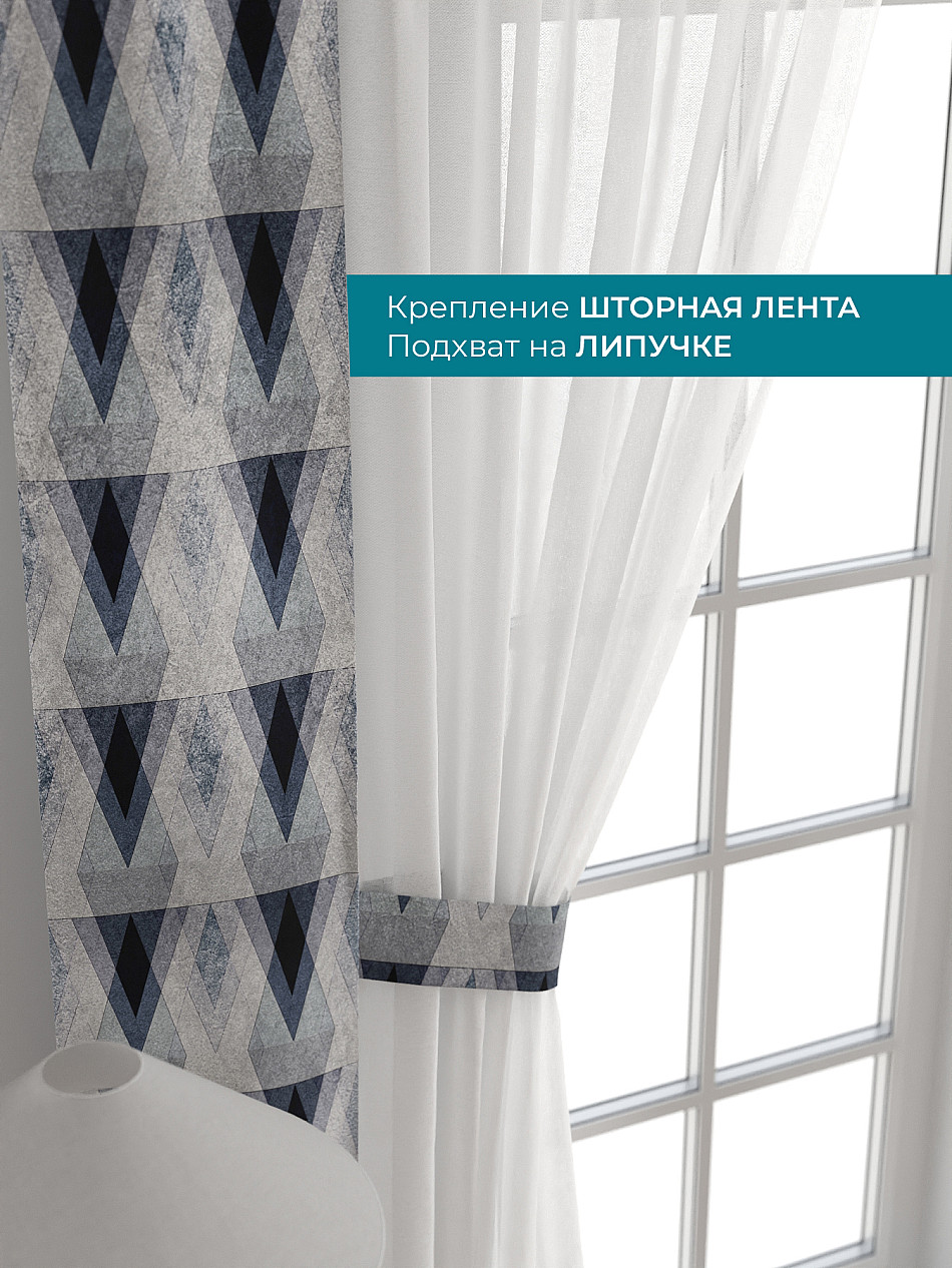 Декоративные подхваты 38х260 см — 2 шт.; Тюль 150х260 см — 2 шт. ( Изменить высоту) Крепление: шторная лента (крючки), кулиска Подробнее