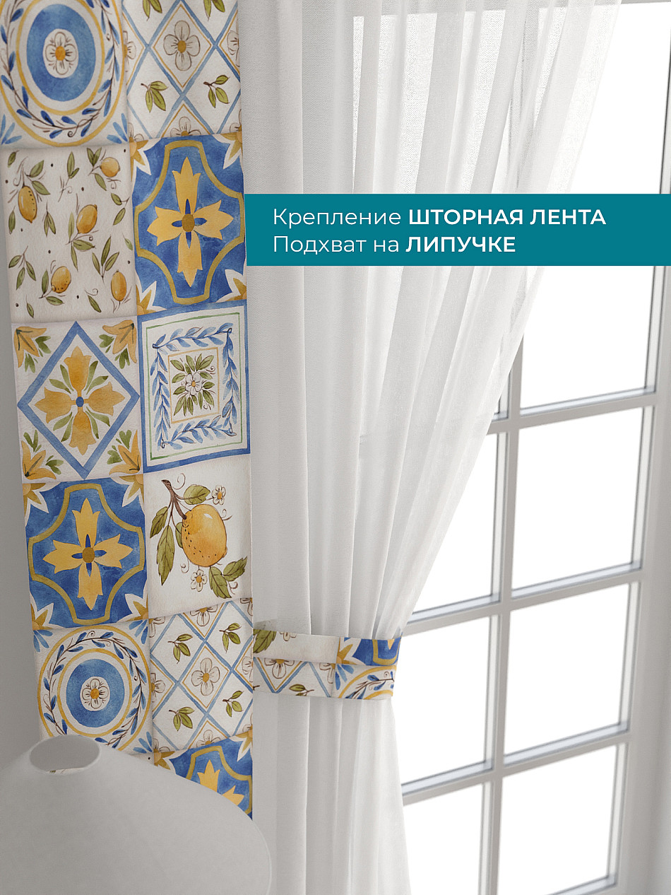 На высоте 125 см. пришит подхват (ширина 10 см.), который позволяет легко зафиксировать тюль или шторы в нужном положении при помощи липучки.