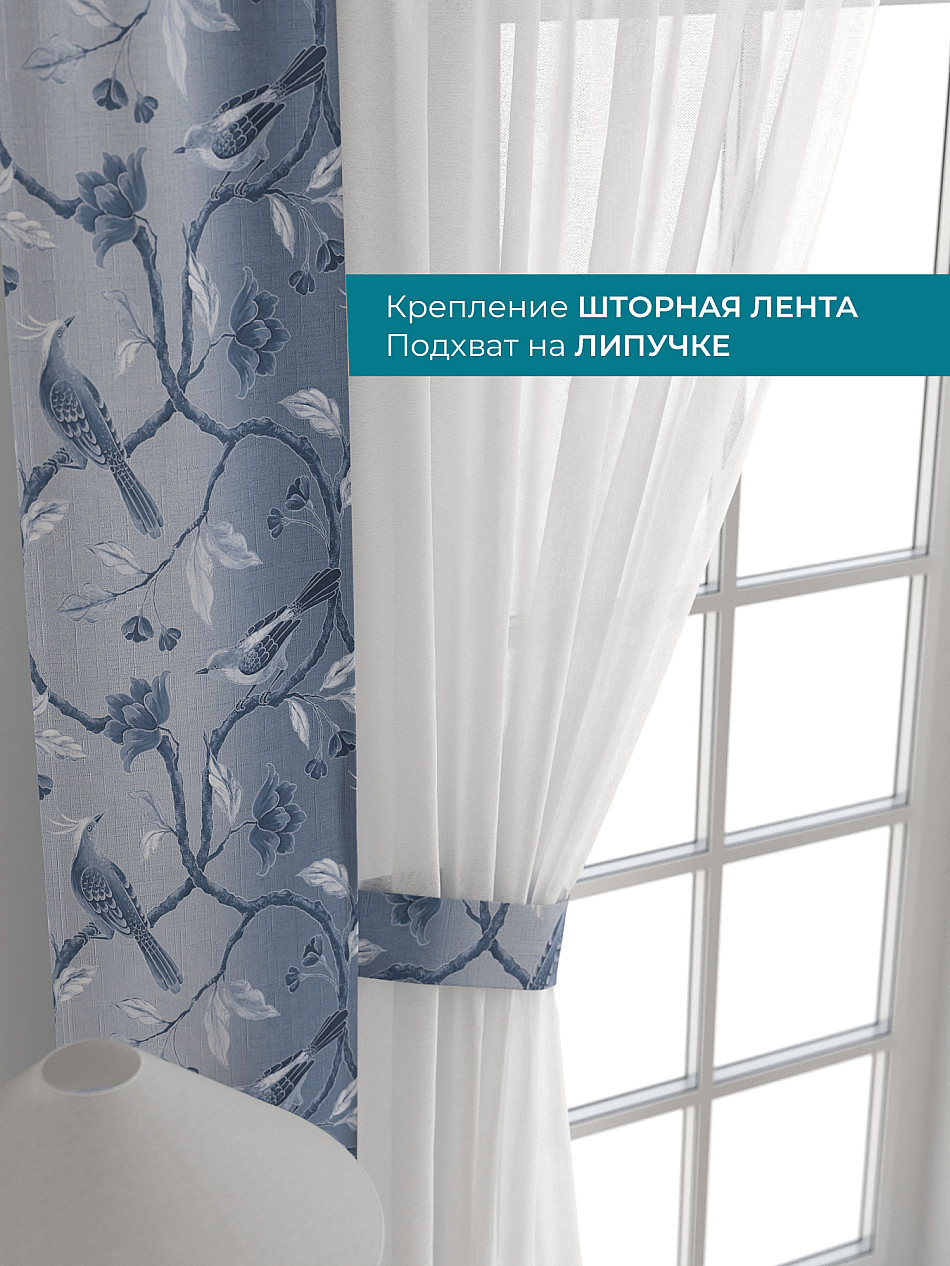 Декоративные подхваты 38х260 см — 2 шт.; Тюль 150х260 см — 2 шт. ( Изменить высоту) Крепление: шторная лента (крючки), кулиска Подробнее
