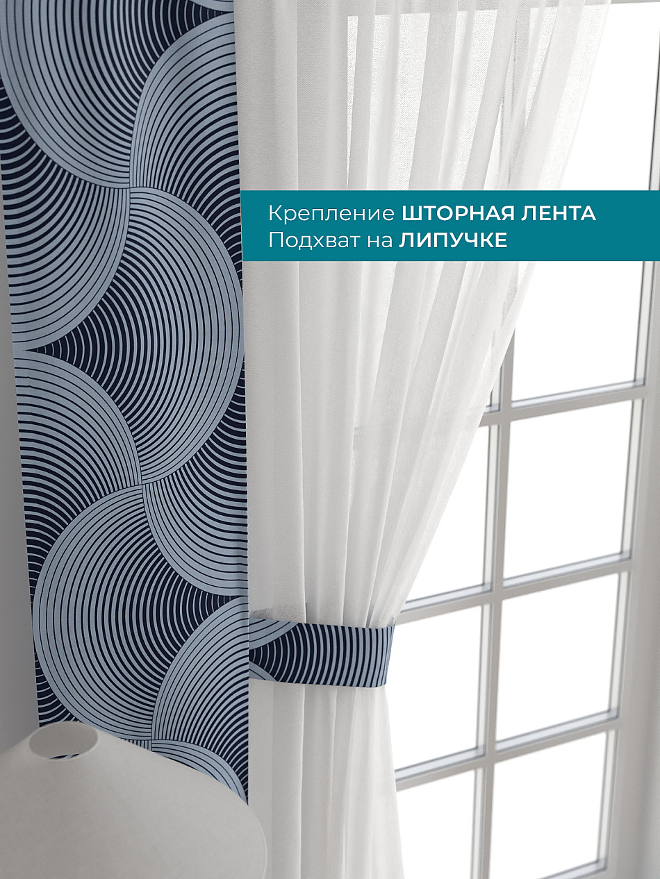 Декоративные подхваты 38х260 см — 2 шт.; Тюль 150х260 см — 2 шт. ( Изменить высоту) Крепление: шторная лента (крючки), кулиска Подробнее