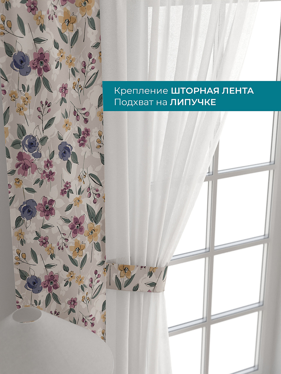 На высоте 125 см. пришит подхват (ширина 10 см.), который позволяет легко зафиксировать тюль или шторы в нужном положении при помощи липучки.
