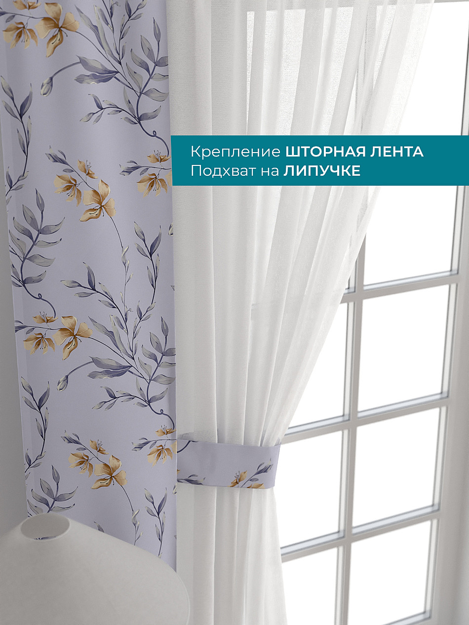 Декоративные подхваты 38х260 см — 2 шт.; Тюль 150х260 см — 2 шт. ( Изменить высоту) Крепление: шторная лента (крючки), кулиска Подробнее